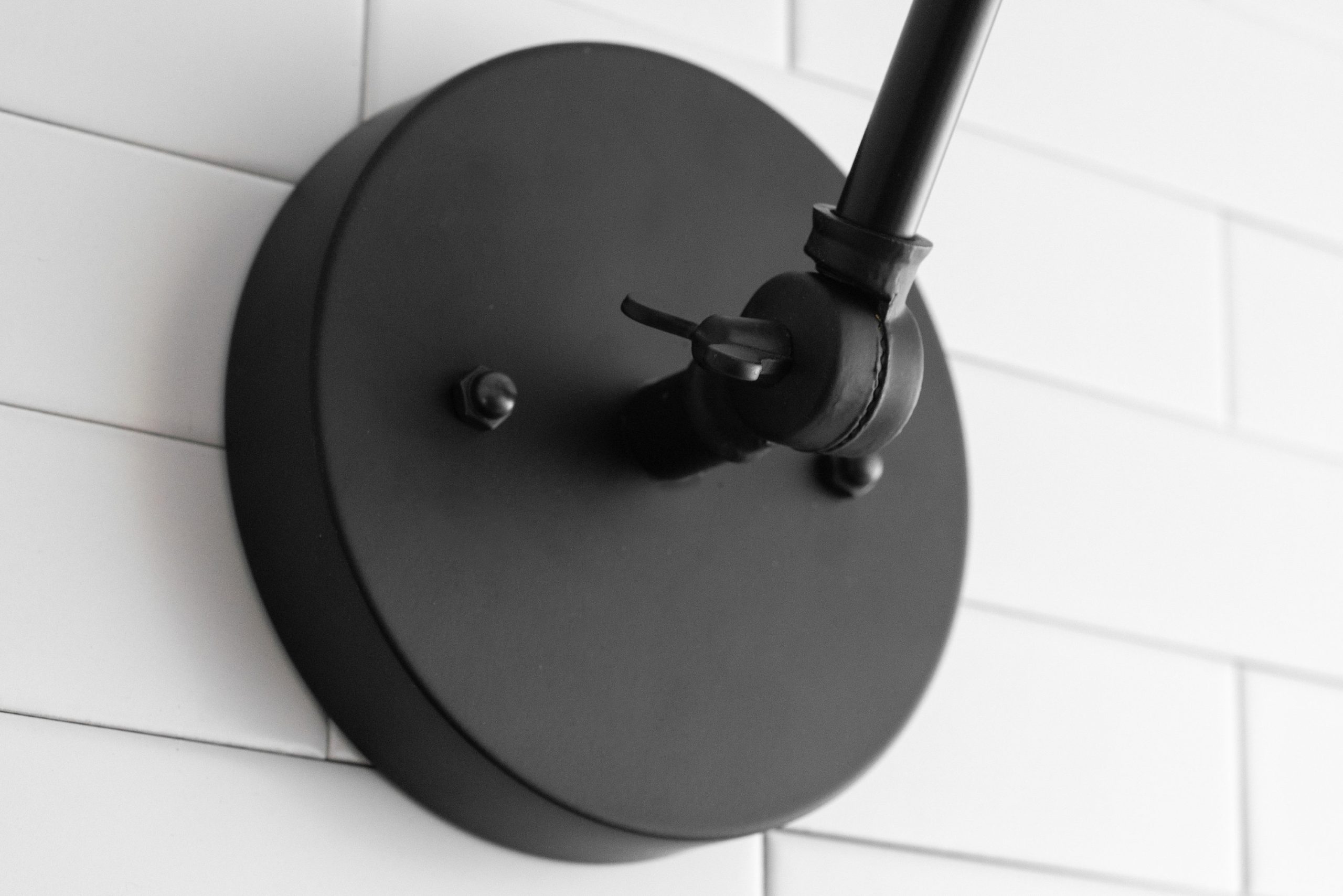 Sharp Contrast: The matte black lamp arm and round base give the design a sophisticated and elegant look, easily complementing modern hardware.