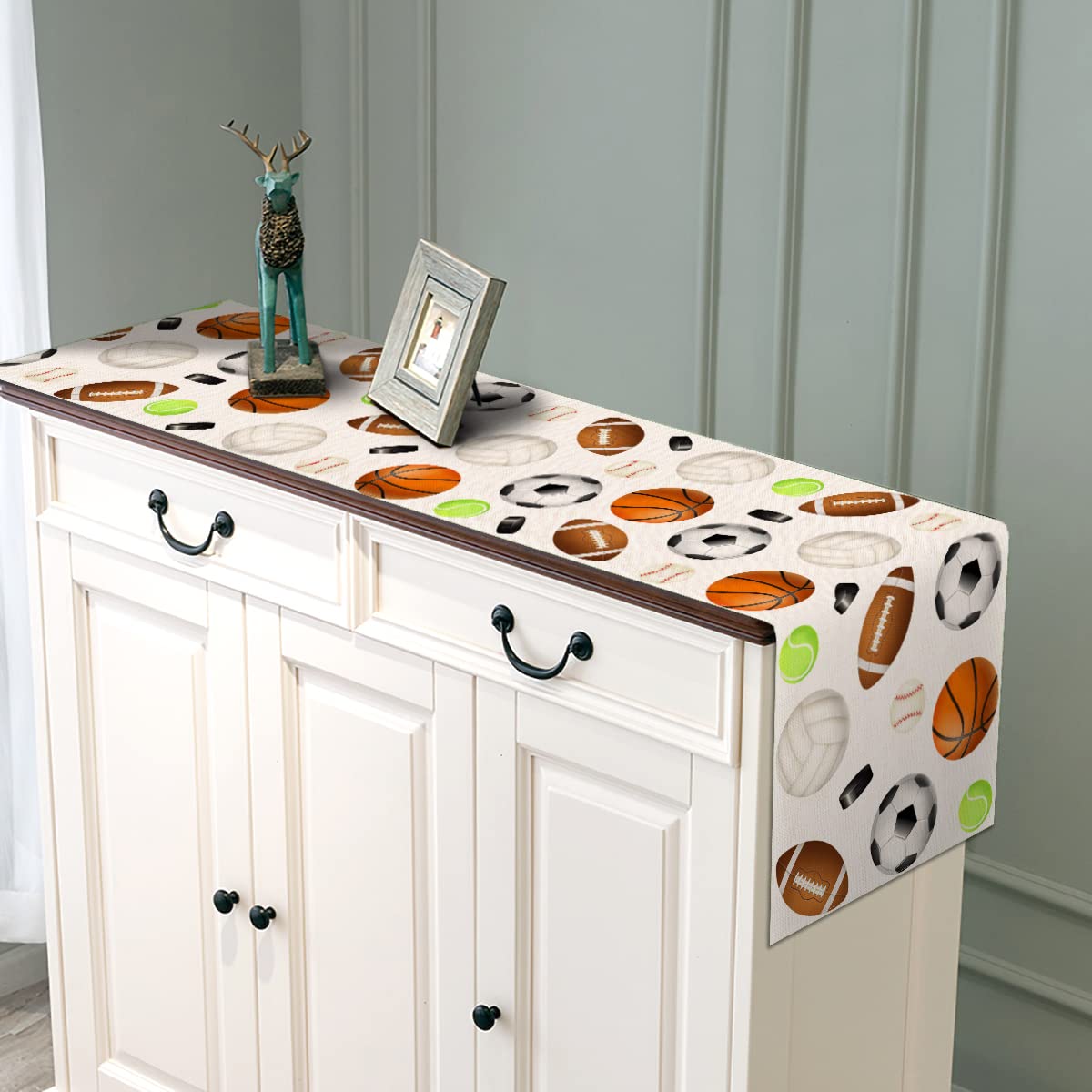 Add a touch of style to your next gathering with this sports-themed table runner. This popular game-day table runner adds a vibrant touch of personality without overwhelming the table. Made from a linen-like polyester blend, it offers the feel of natural fibers, durability, and easy care, making it ideal for birthdays, team celebrations, and weekly watch parties.