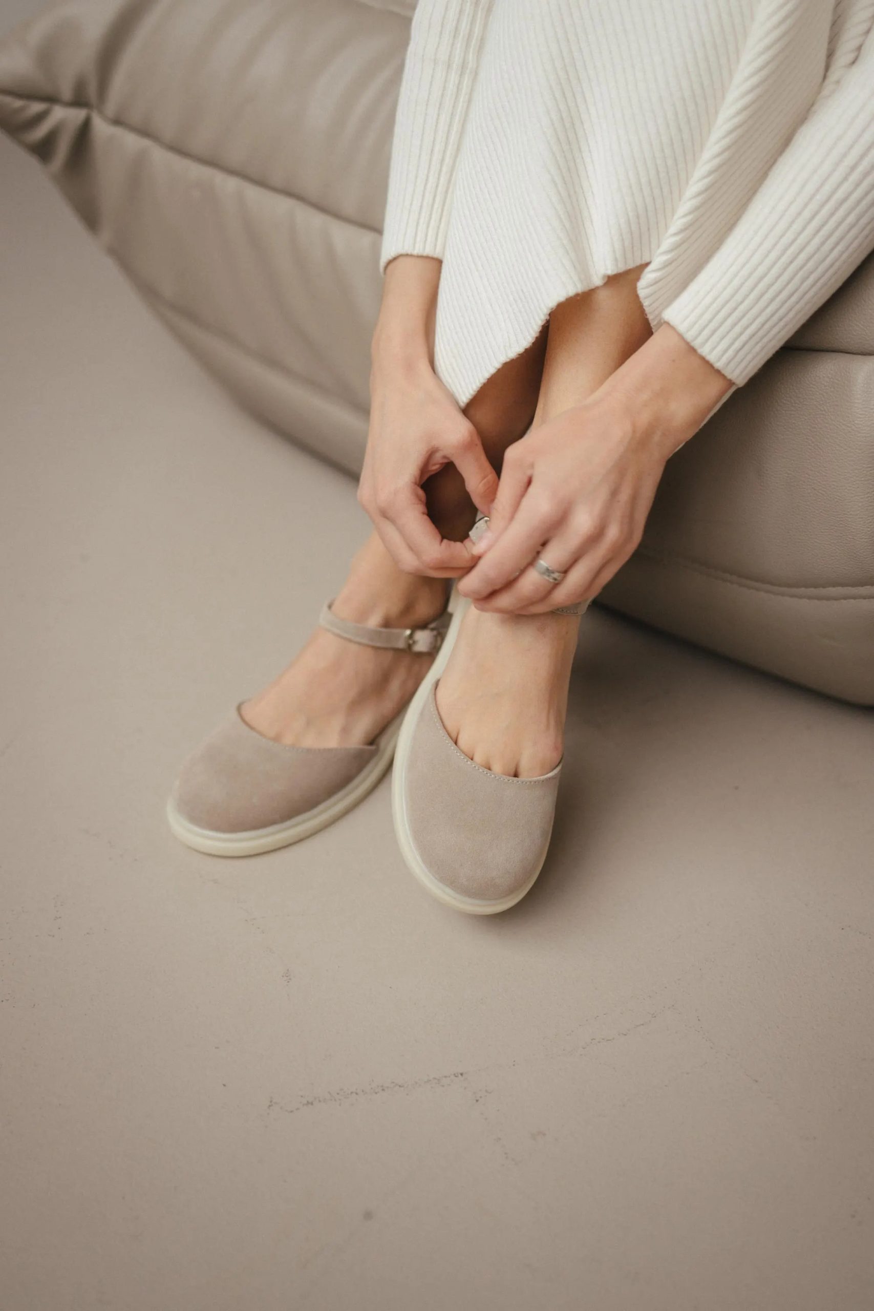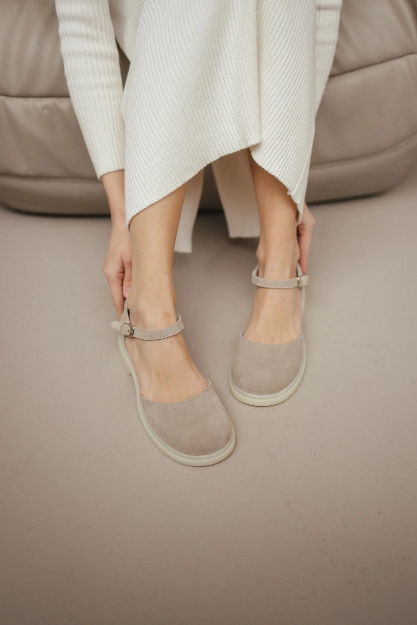 This calm, modern Mary Jane combines plush texture, ankle protection, and all-day comfort.