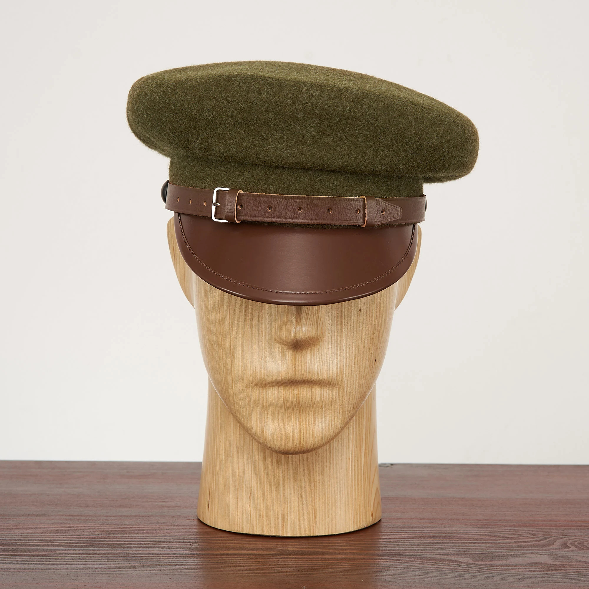 Highlight Details: The brown leather strap and metal buckle add a tough, workwear-inspired detail to the army-green cap, enhancing its overall recognition. The adjustable leather strap balances practicality and aesthetics, adding a layered, vintage touch to the look.