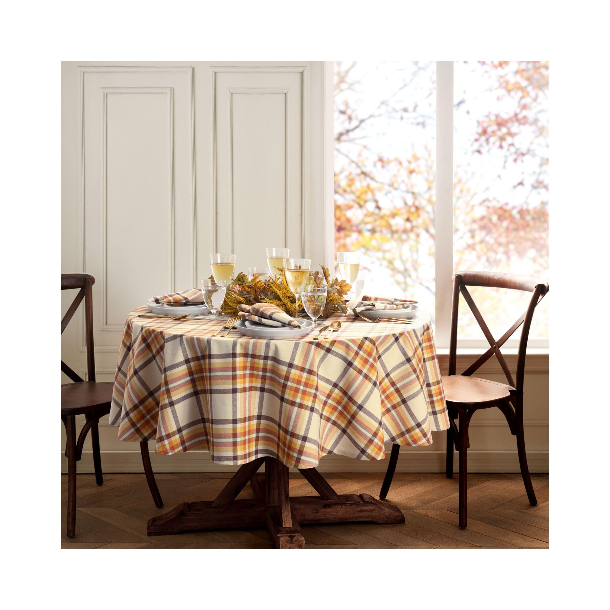 This warm-toned plaid tablecloth brings the welcoming charm of harvest season to your tablescape. Its soft colors and rustic elegance make it ideal for everyday dining and festive fall gatherings.