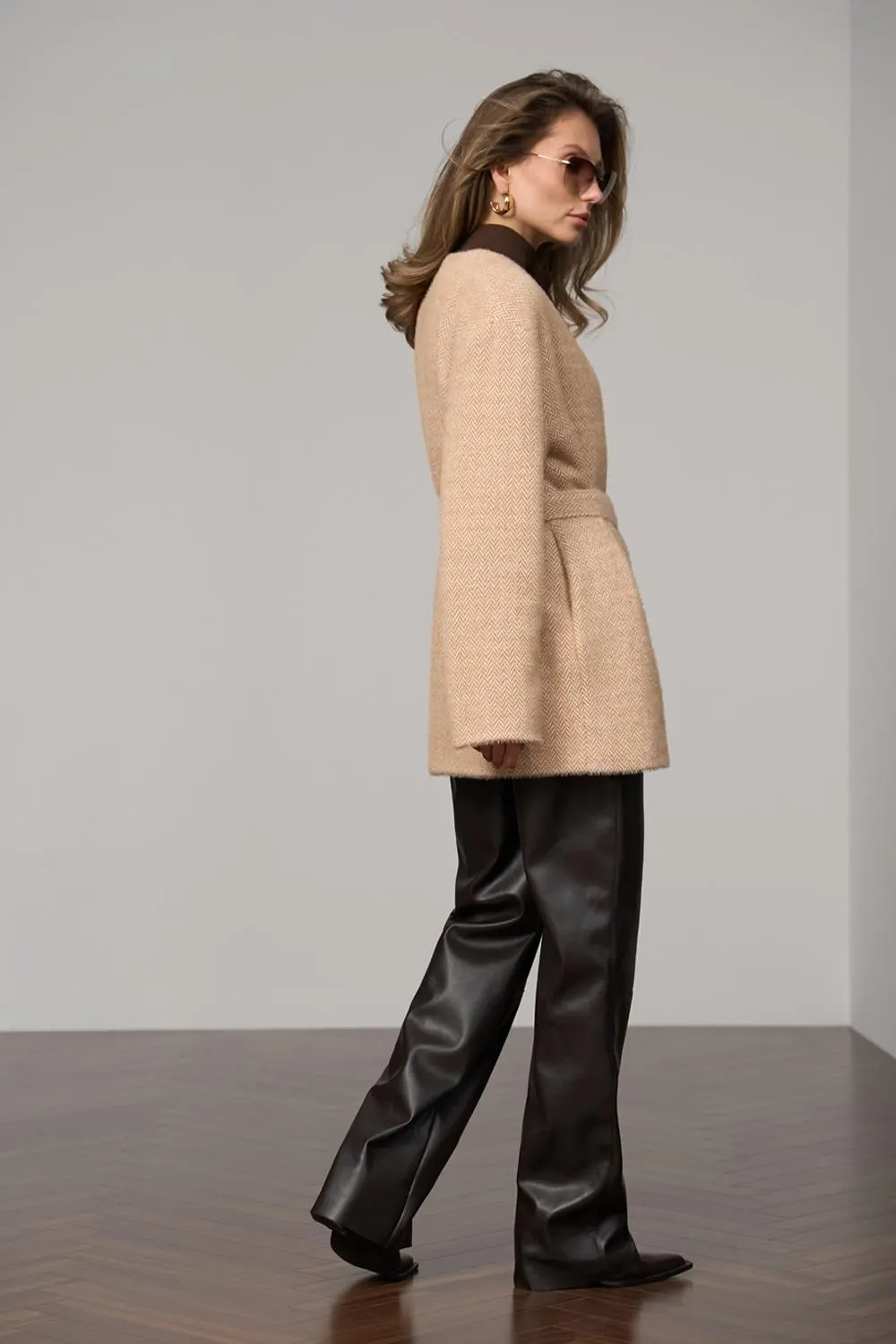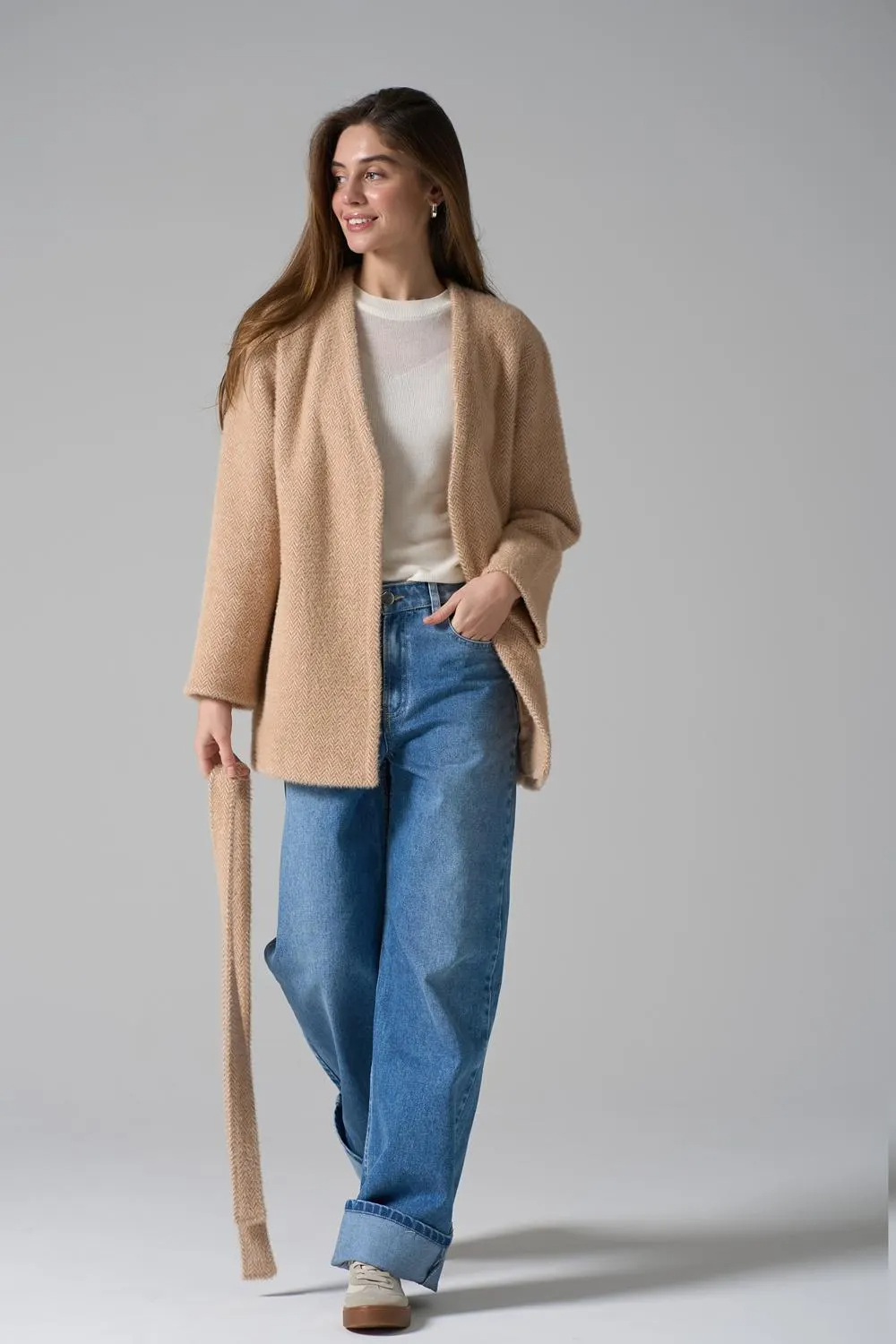 This beige belted knit cardigan features a soft neutral tone and a clean wrap-style silhouette for an elegant, timeless look. The warm beige shade makes it easy to style with both casual and polished outfits, while the longer length adds a refined touch to everyday layering. Its understated design gives it a versatile appeal for cooler seasons.
