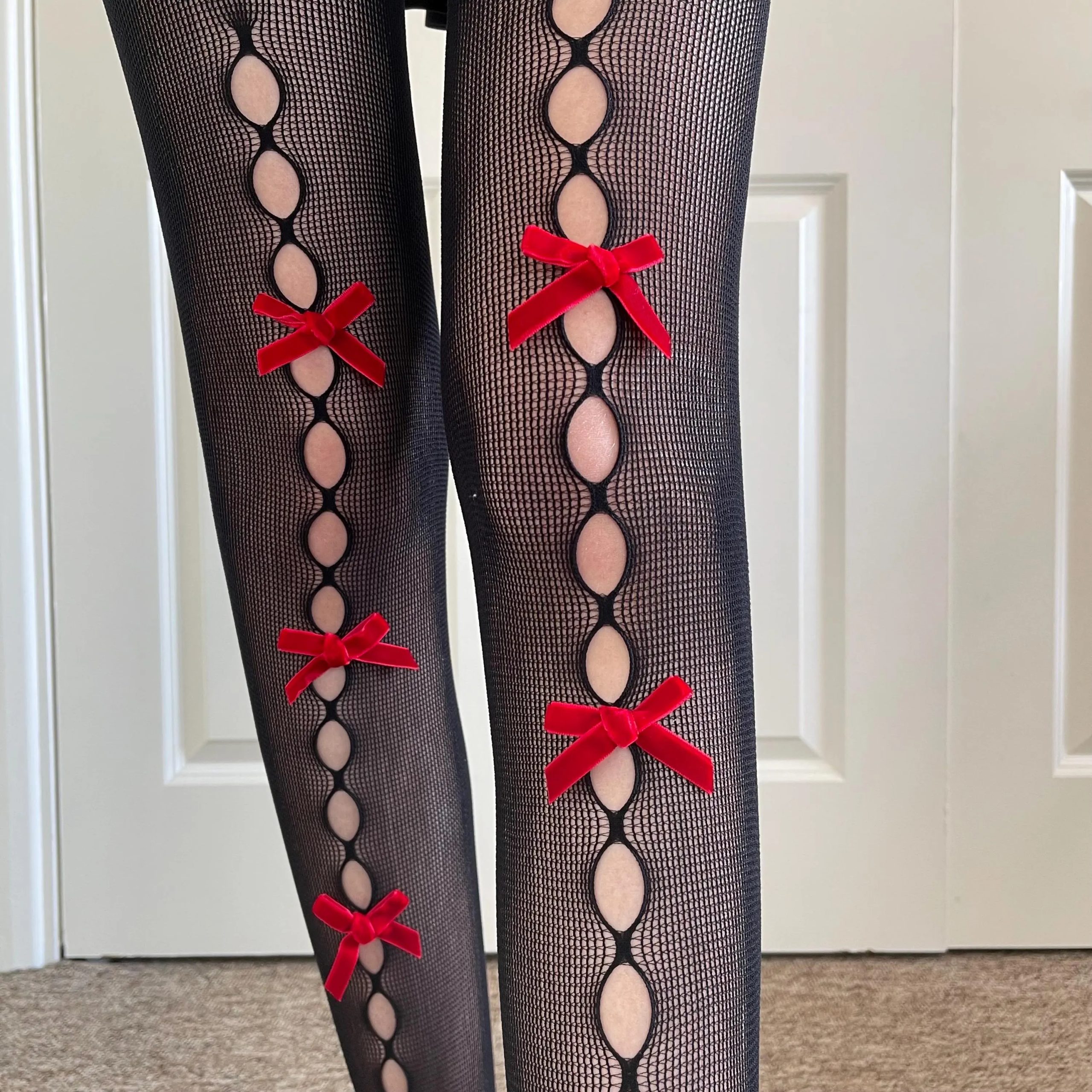 Be the first to review “Black and red contrasting bow hollow pantyhose”
