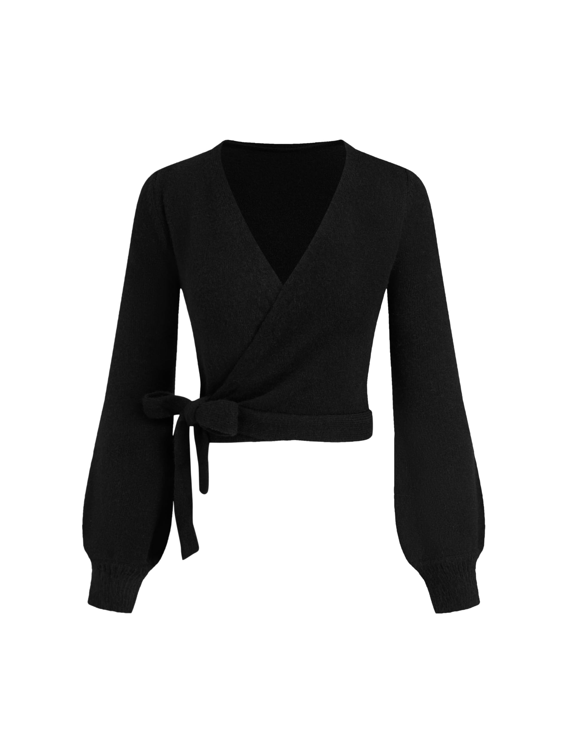 Deep V-neck wrap design – accentuates a charming neckline; easily adjustable for comfortable wear.