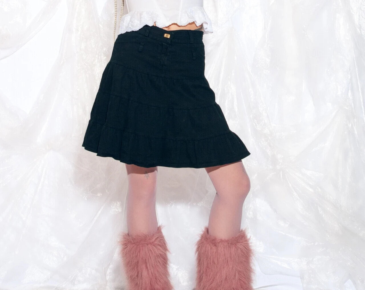 A playful take on classic denim: This miniskirt features soft layering that flows as you move. Easily dress it up or down—wear it with a cropped sweater and boots, or a T-shirt and sneakers.