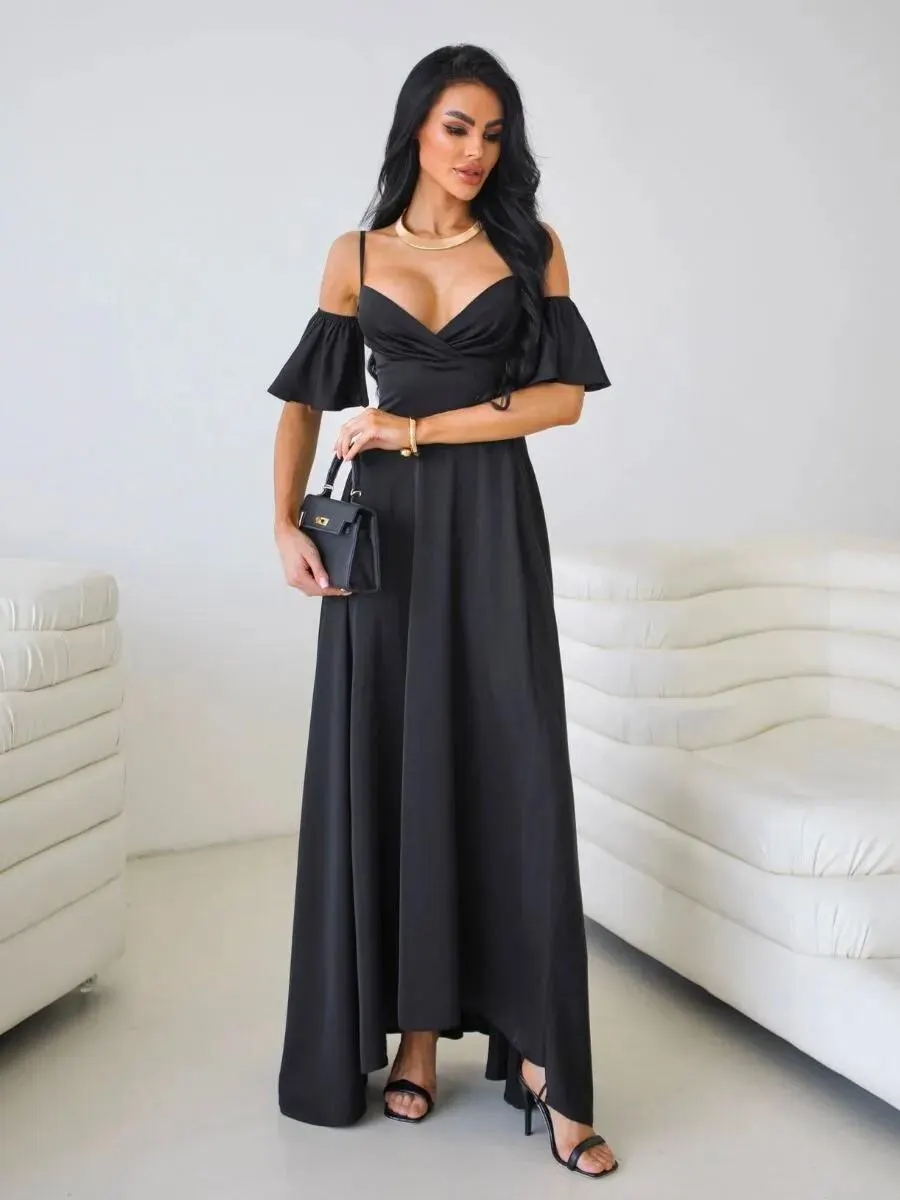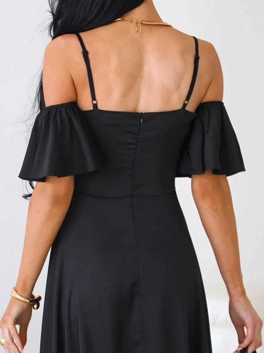 Shoulder Design: Spaghetti straps and ruffled off-the-shoulder sleeves create a romantic vibe.