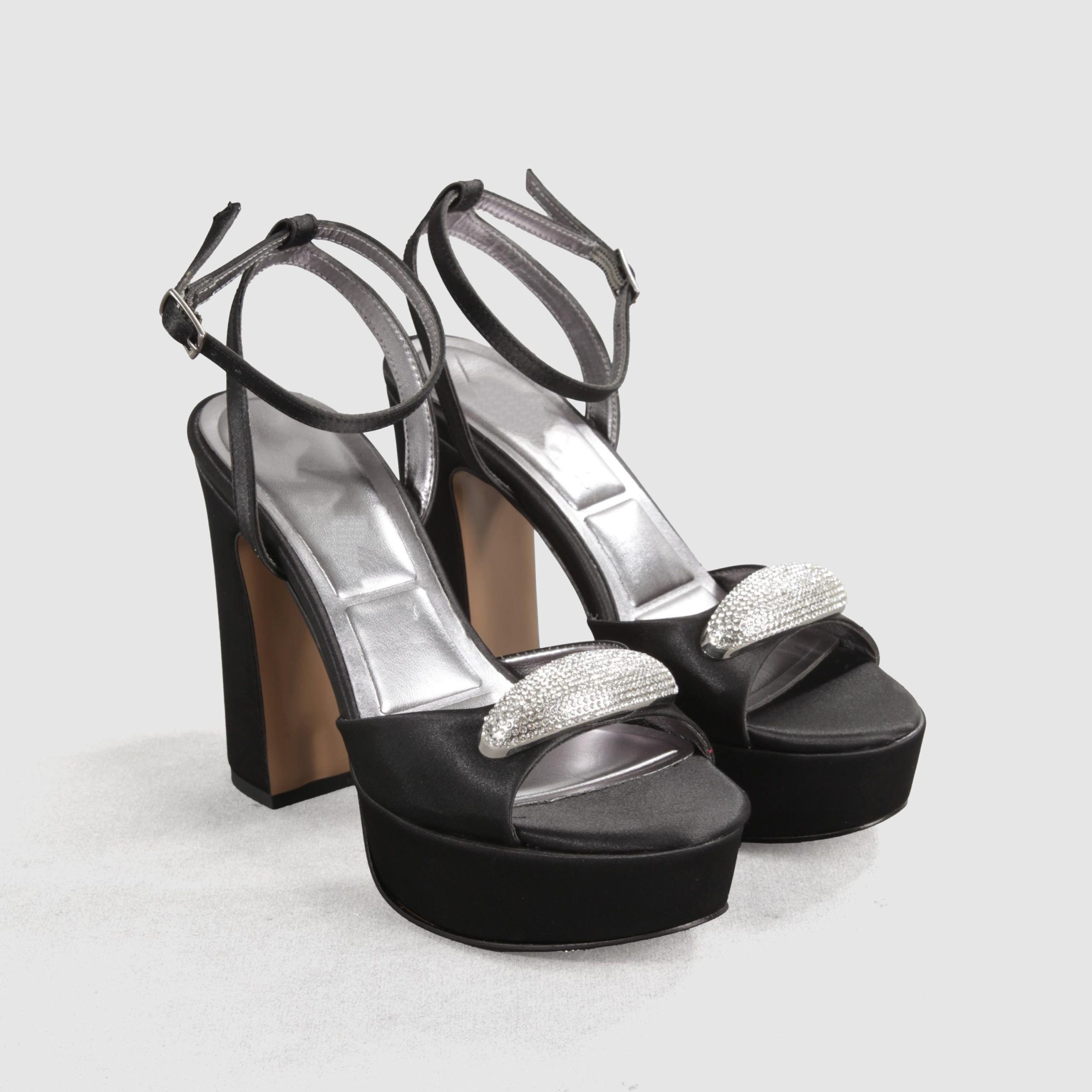 **Open-toe design:** Naturally expands the toe box, preventing toe compression and discomfort, while showcasing delicate nail art. This visually echoes the black base and sparkling rhinestones, making the foot appear more dynamic and elongated.