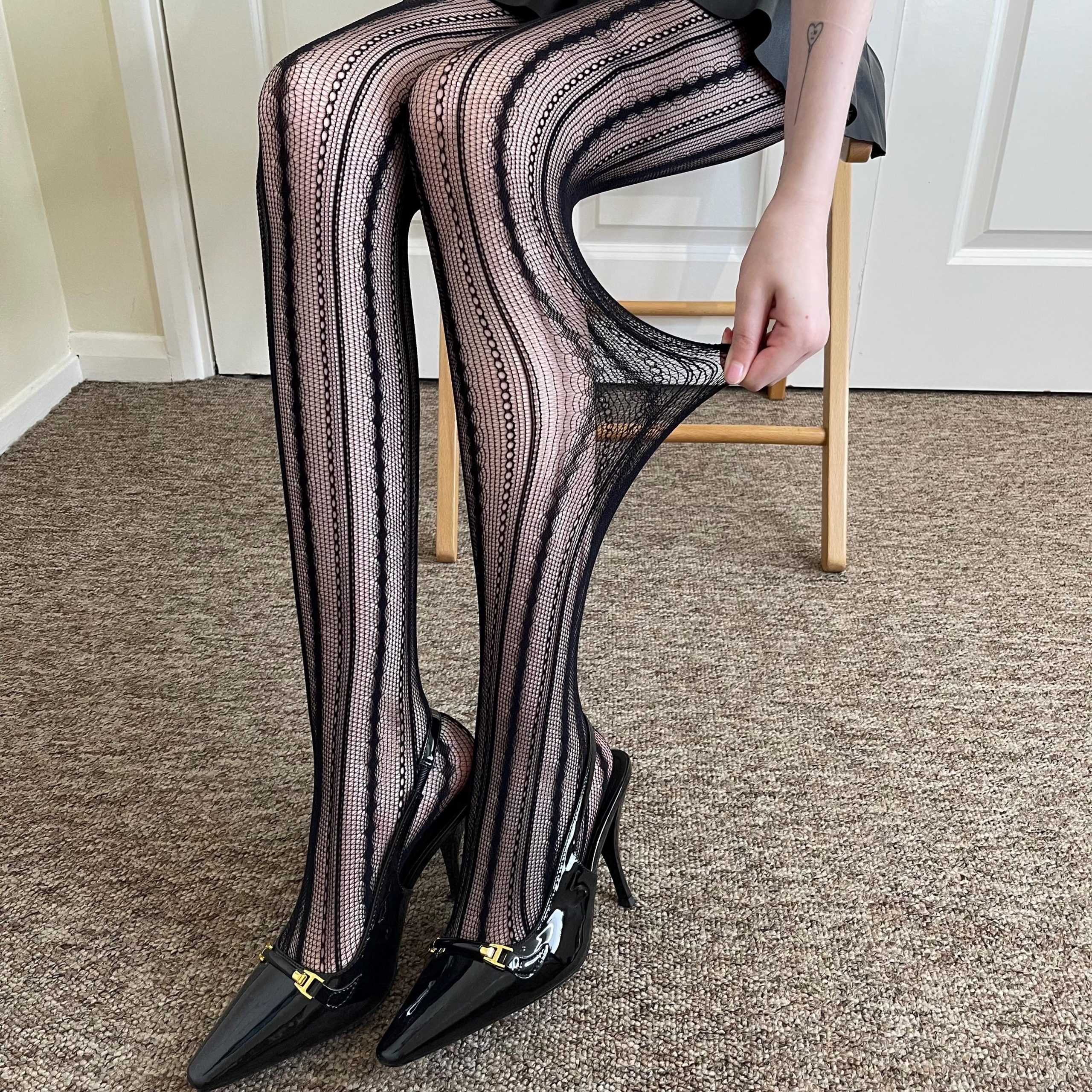 Party style: Pair it under a black dress or suspender skirt, add stiletto heels, and the retro sophistication of the striped lace on a black background makes the legs look more stylish, showing off your sophisticated charm on dates and parties.