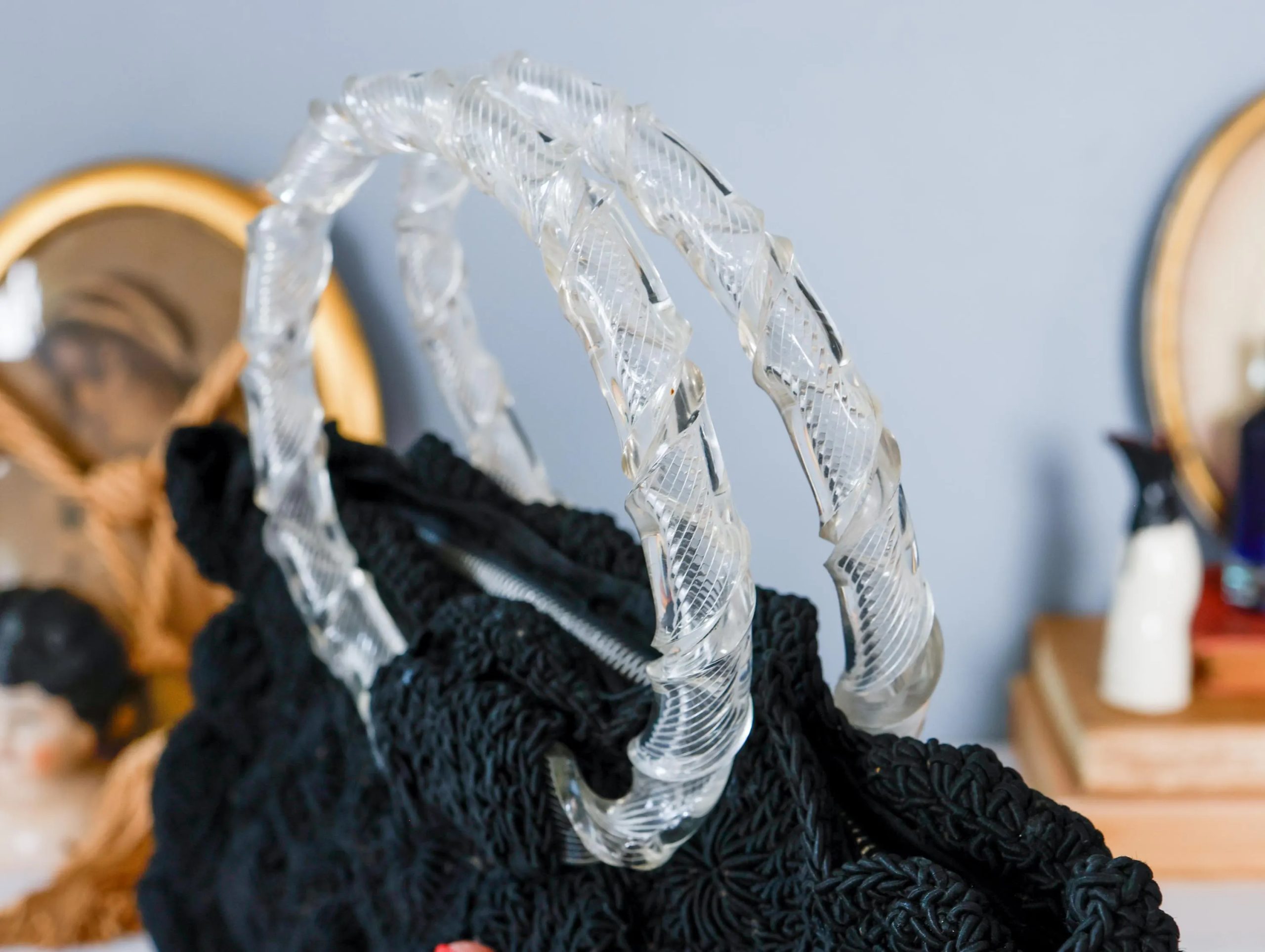 Retro Velvet Evening Style: Pair a black velvet dress with a tote. The 3D floral embellishments clash with the texture of the velvet, while the transparent handbag echoes the vintage crystal accessories, creating an evening look that feels like something out of a vintage art gallery.