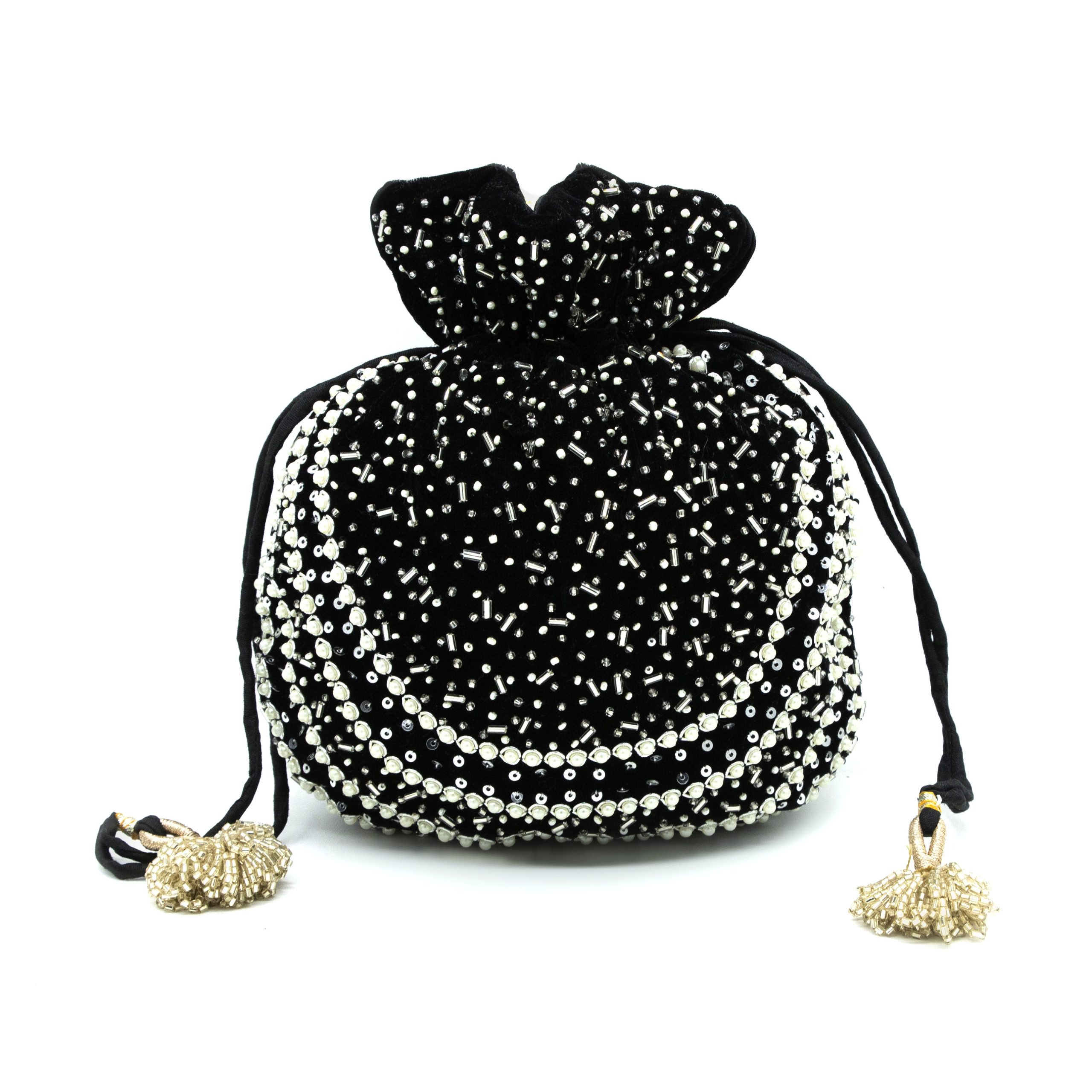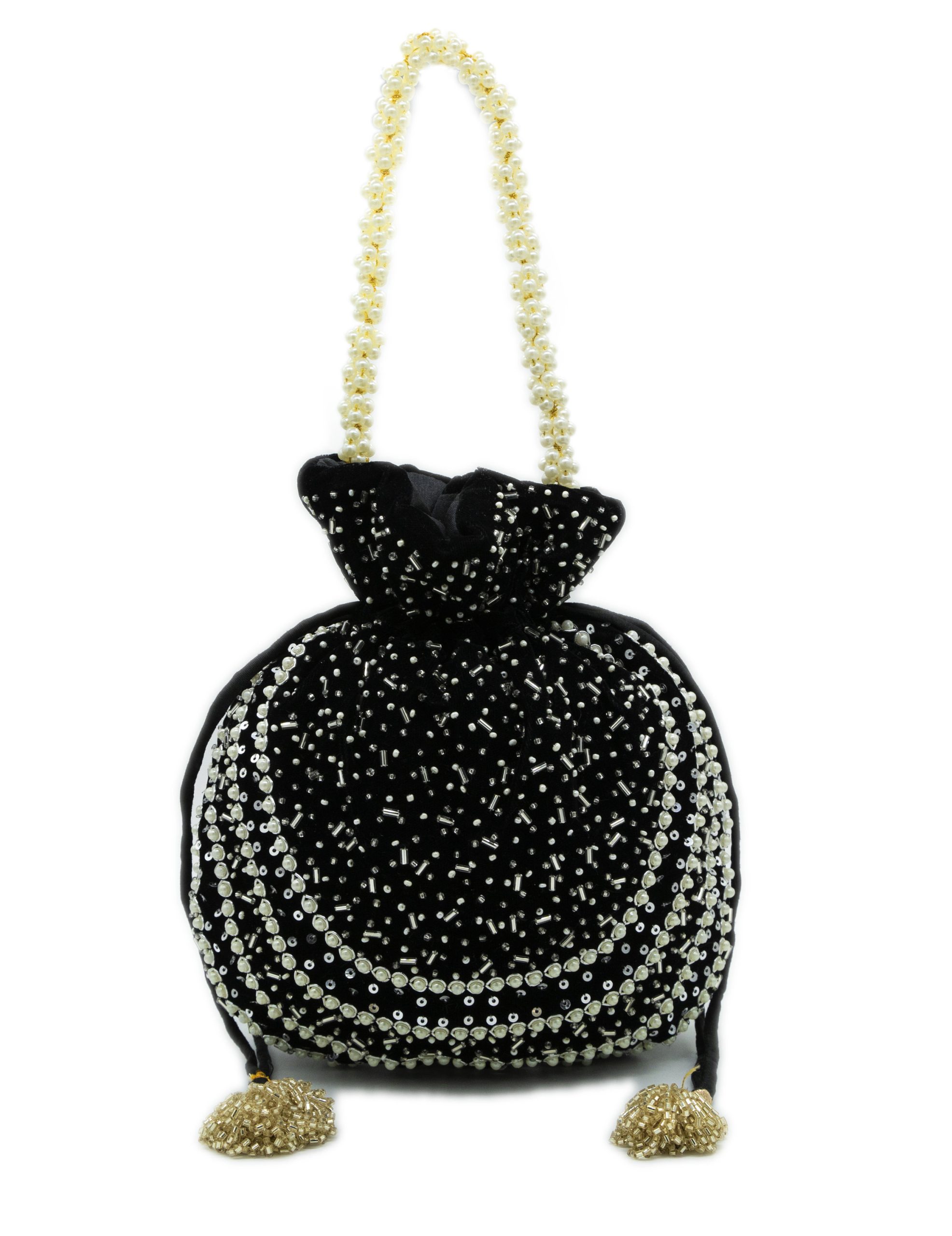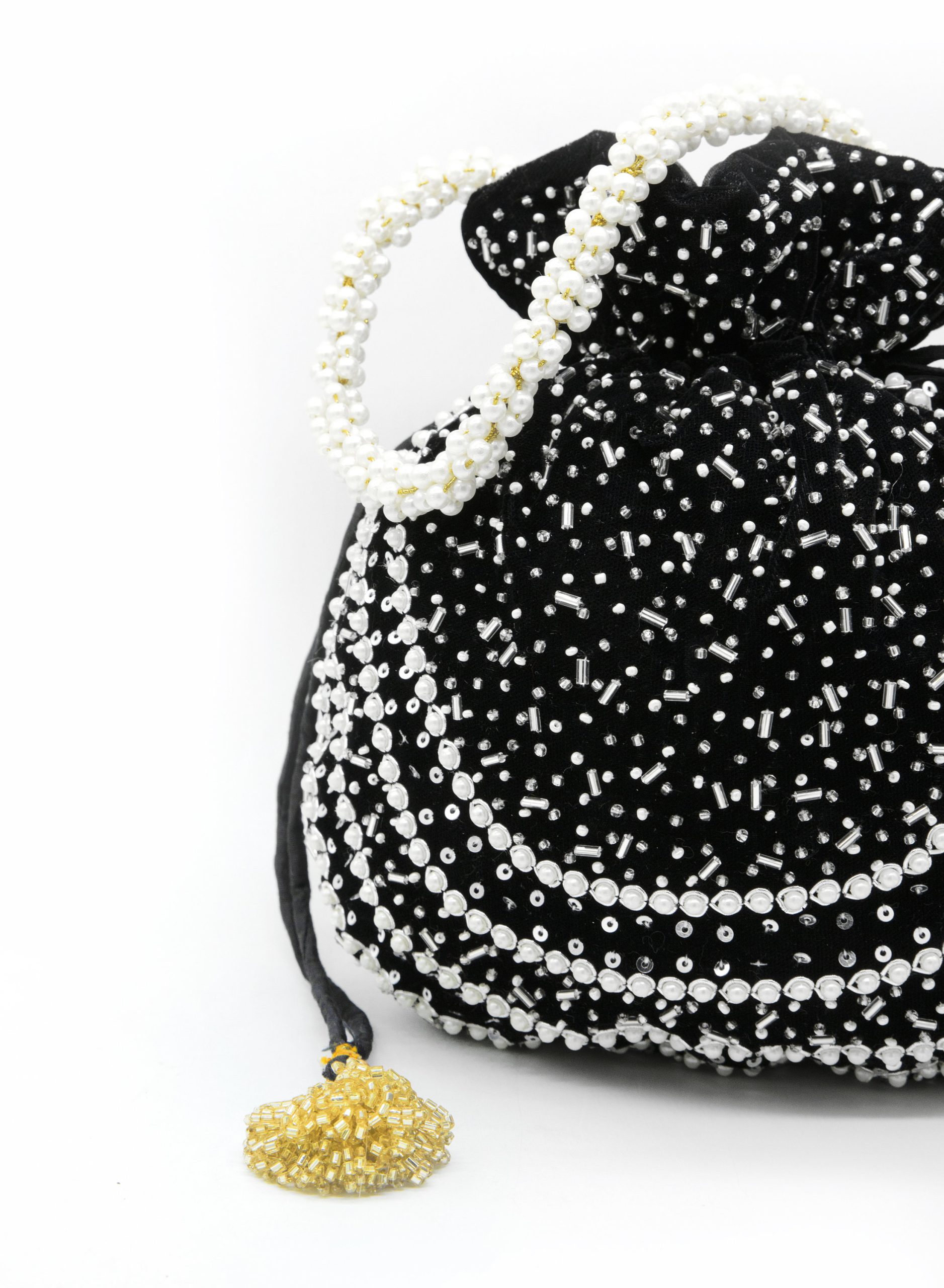 Be the first to review “Black Velvet Pearl Stud Potli Bag”