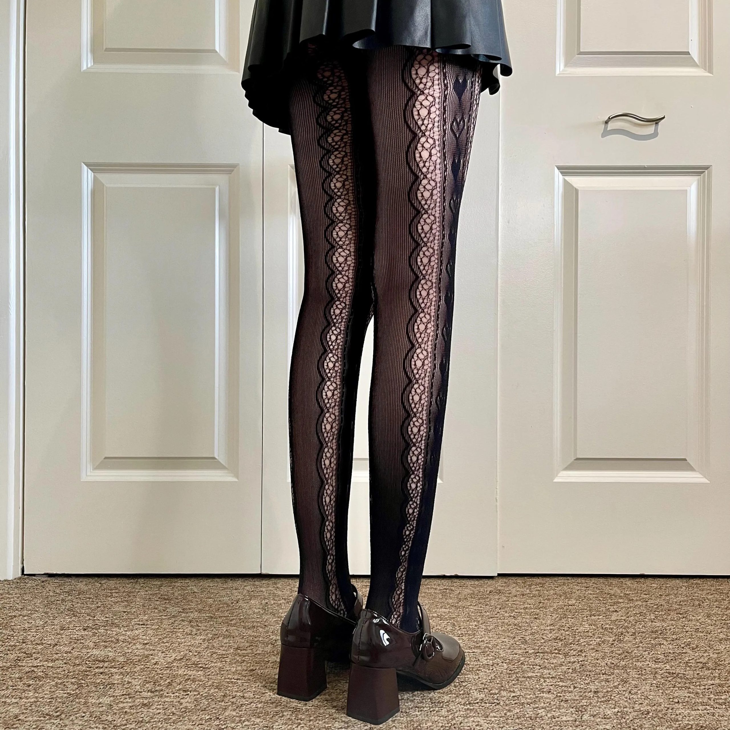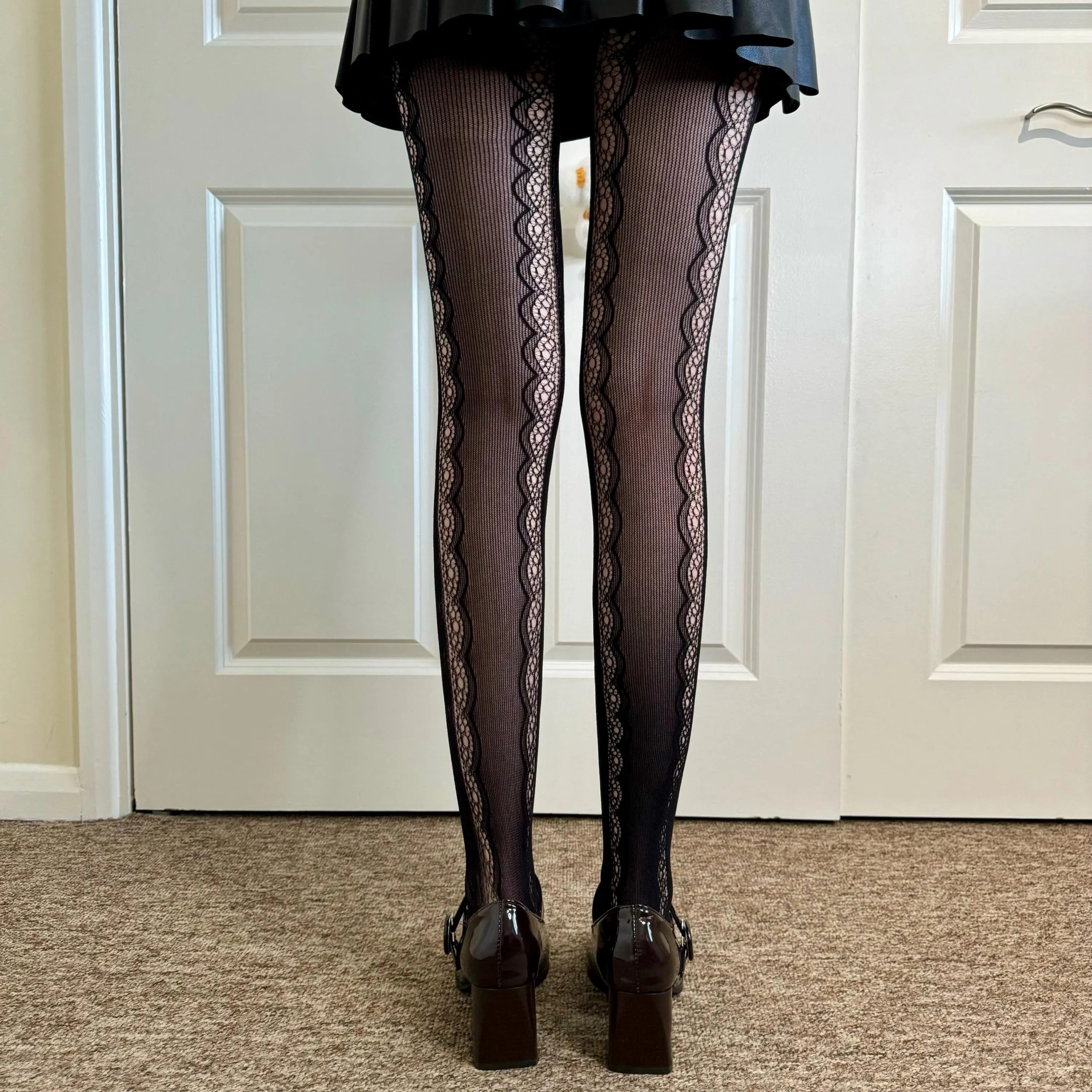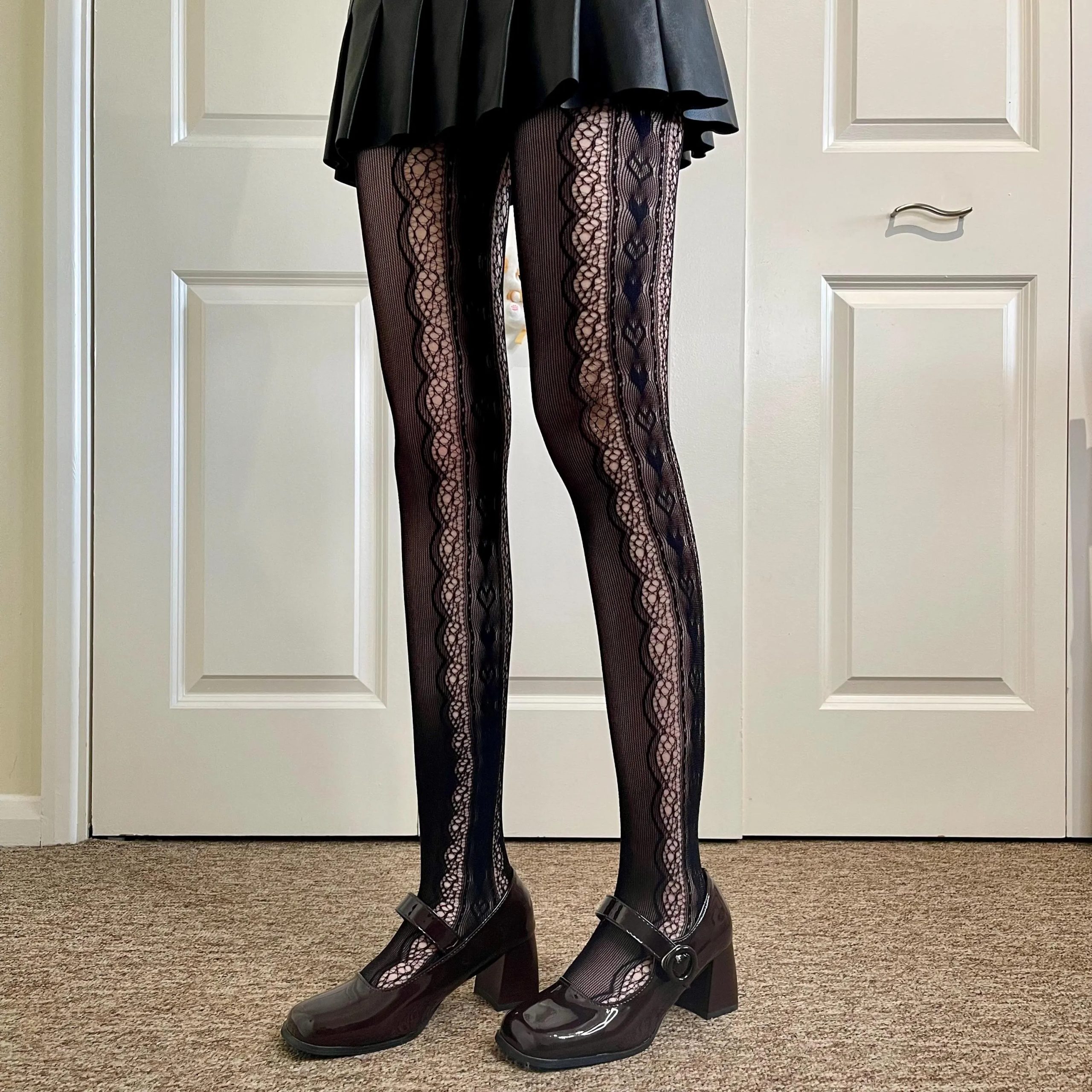 Party retro style: Pair it under a black dress or suspender skirt, and add stiletto heels. The retro sophistication of black lace makes the legs look more stylish, showing retro charm in dates and parties.