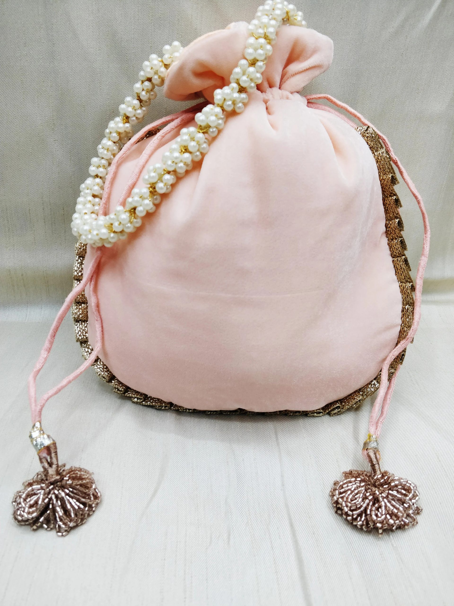 Be the first to review “Blush Pink Floral Embroidered Potli Bag”