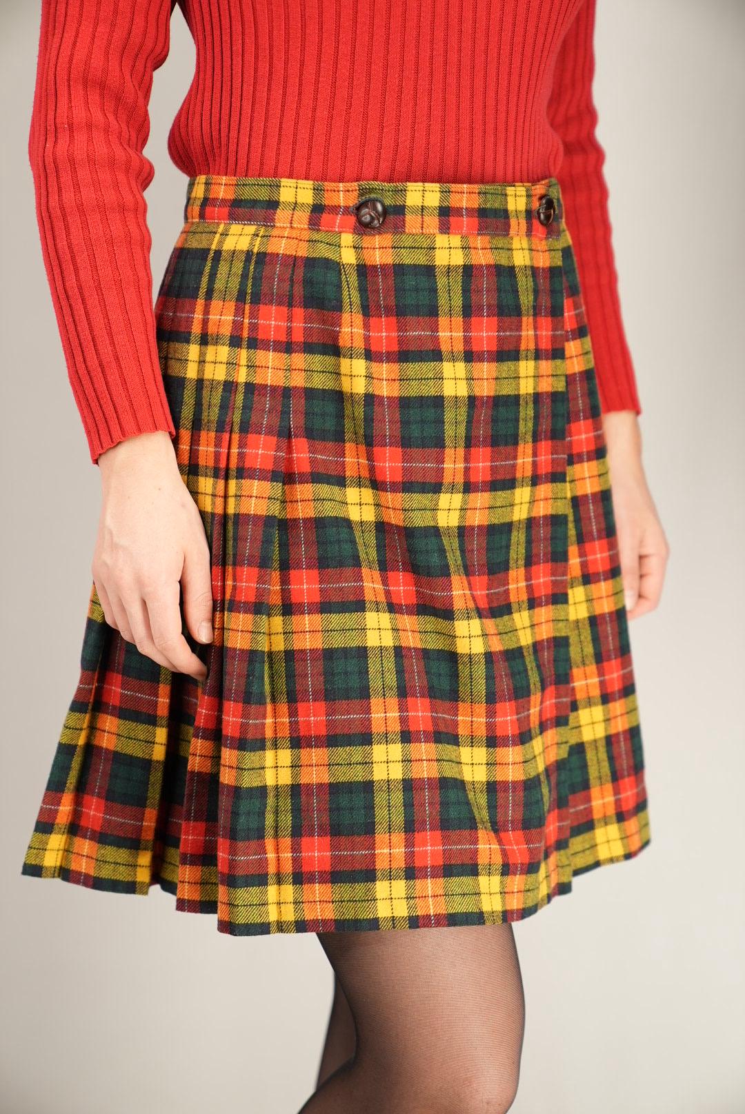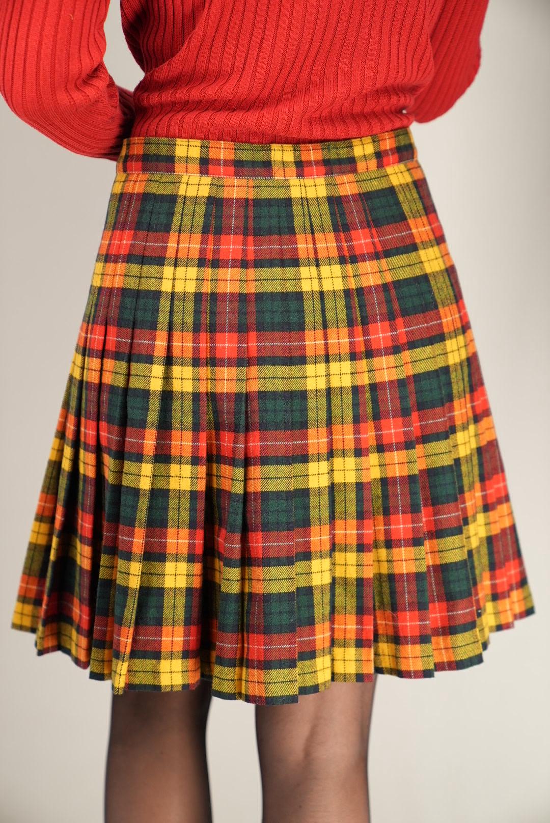Lively, nostalgic, and easy to style, this bright tartan pleated skirt adds instant character and vintage charm to your wardrobe.