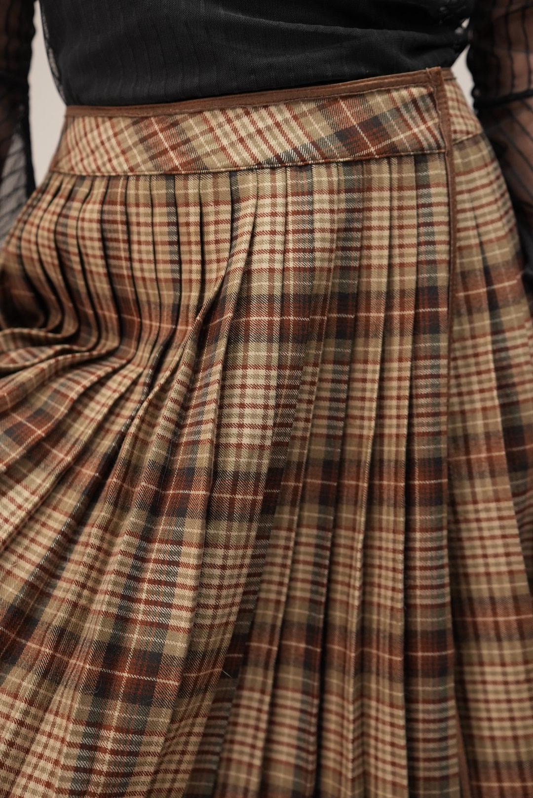 Warm, classic, and easy to style, this brown tartan pleated midi skirt brings heritage charm and effortless swing to your wardrobe.