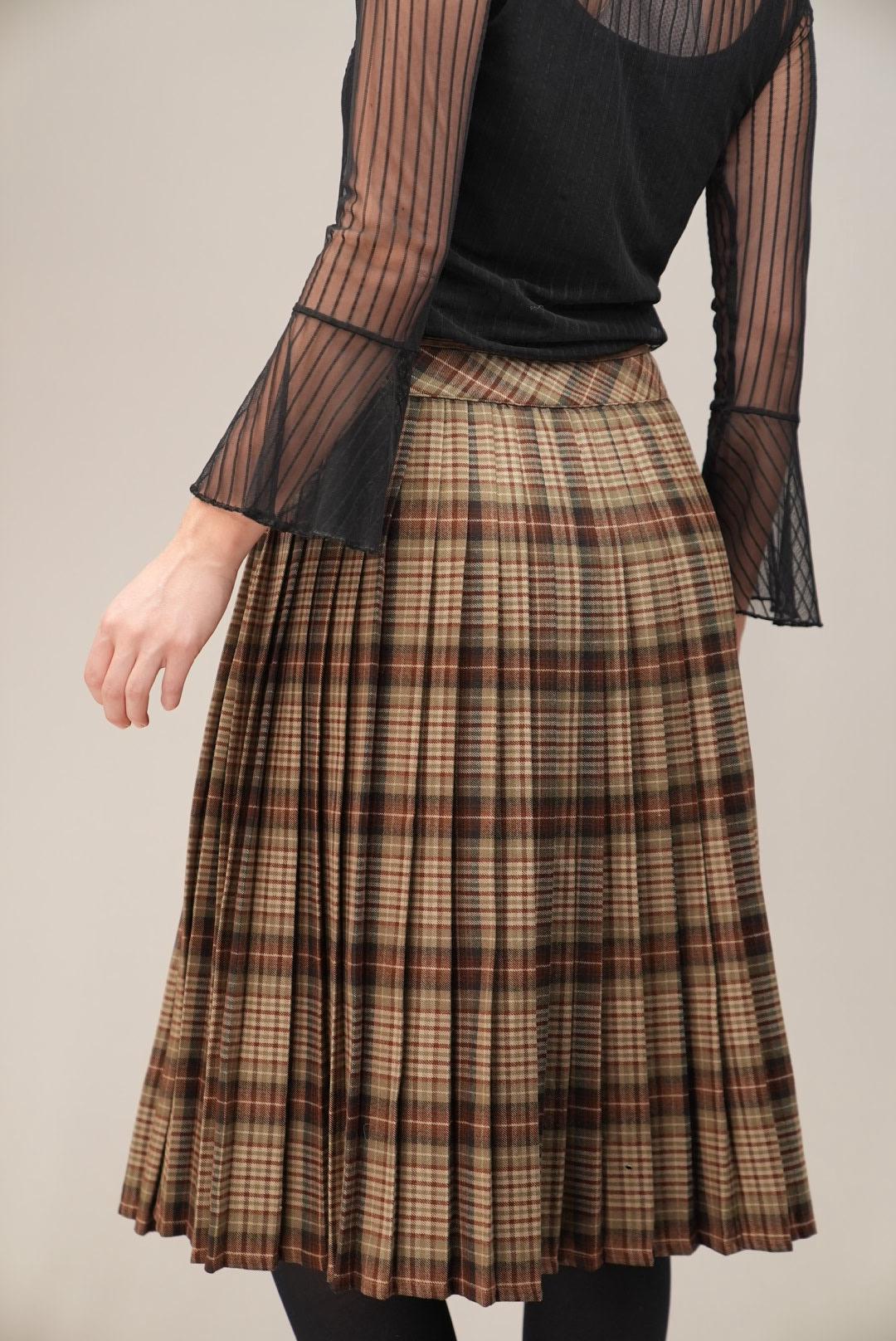 Brown Tartan Pleated Midi Skirt Heritage Swing Silhouette