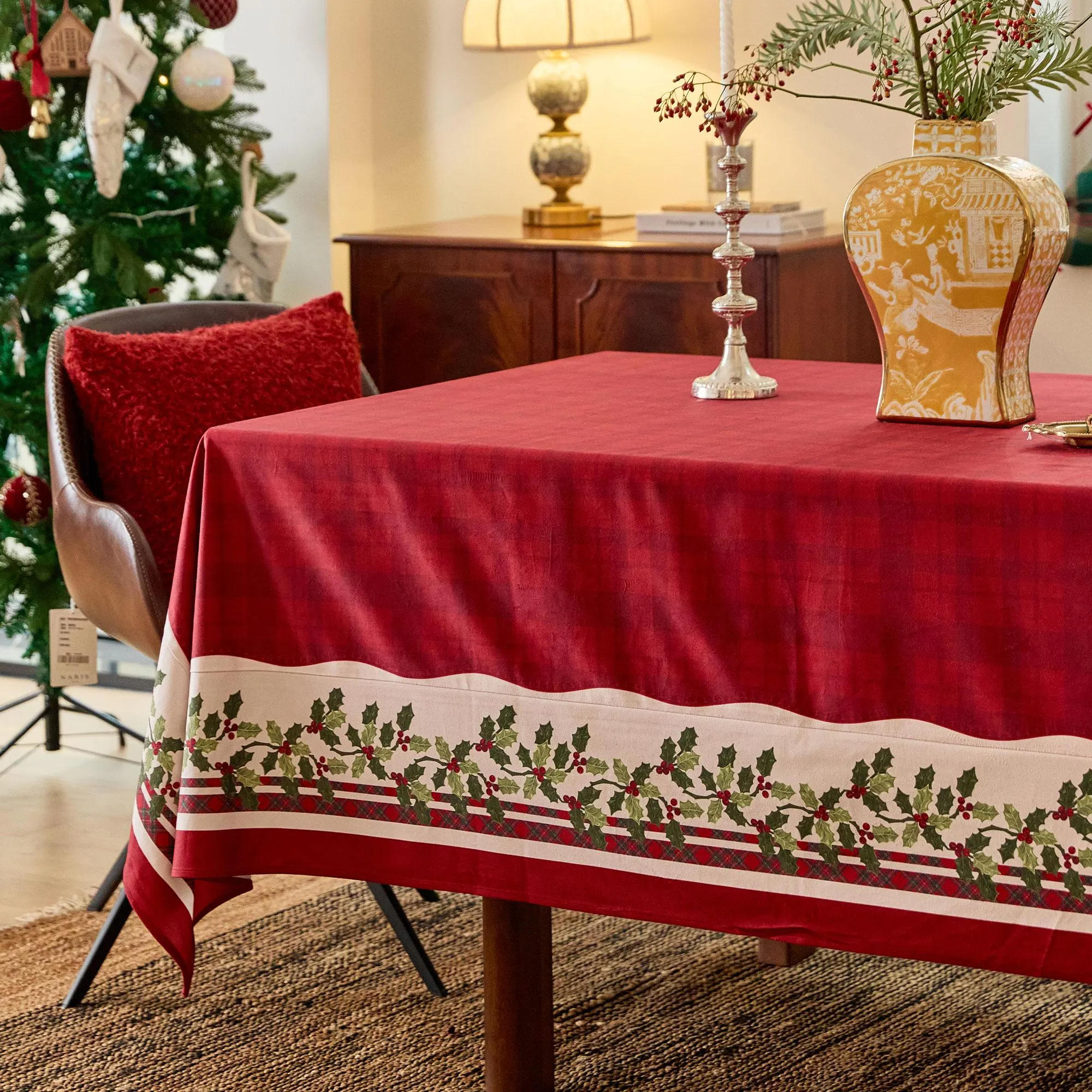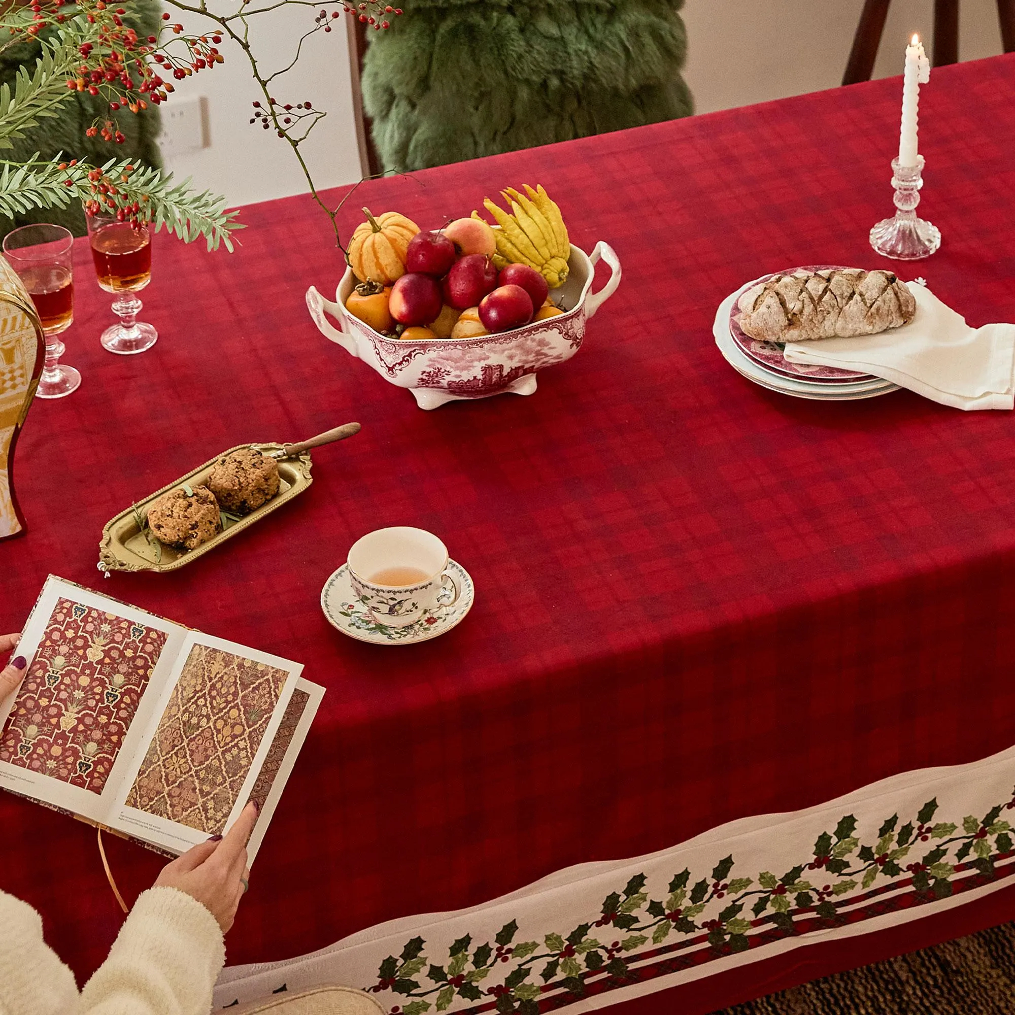 Be the first to review “Burgundy Plaid Holly Border Tablecloth”