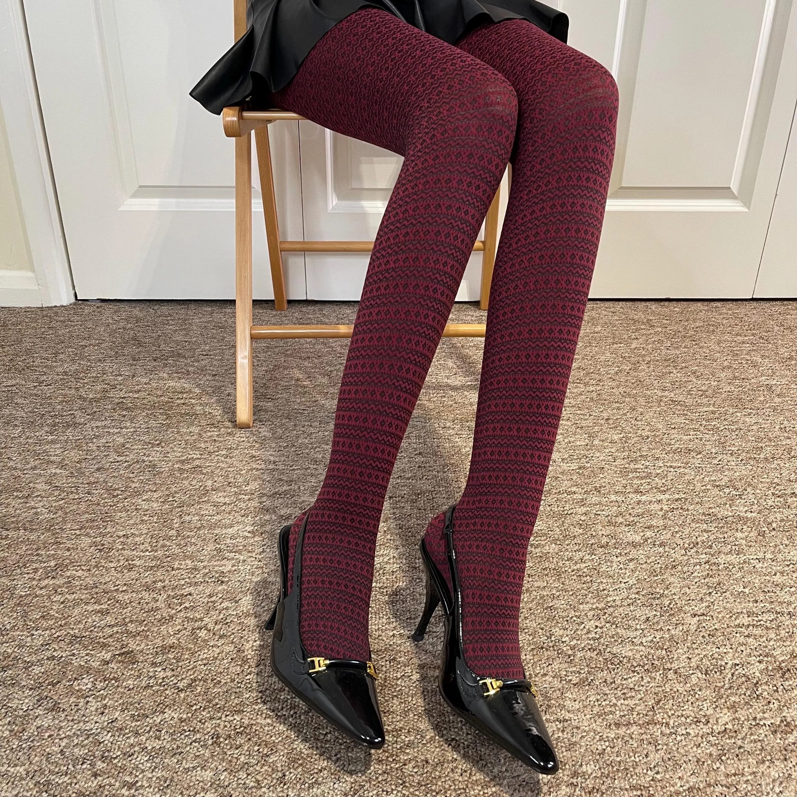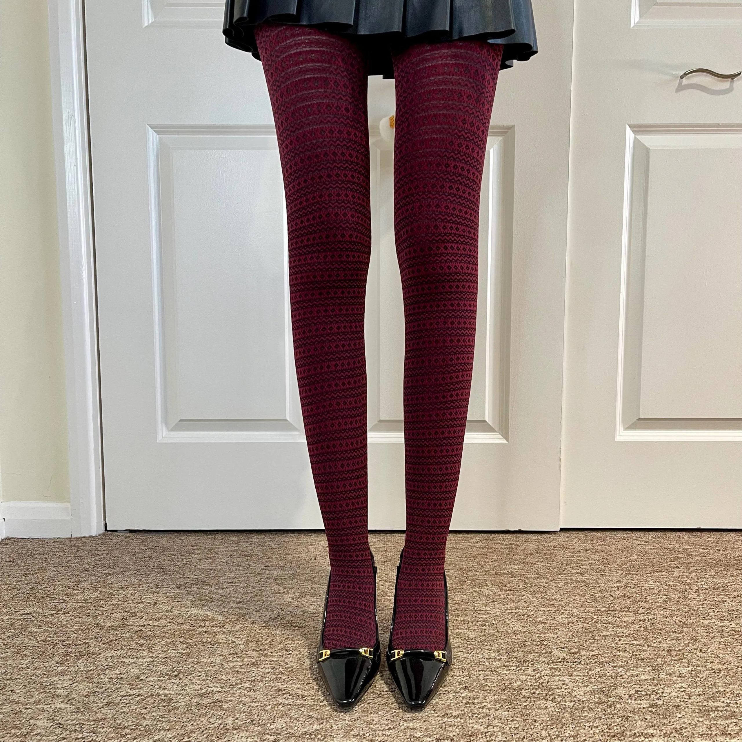 Retro striped design: The burgundy base is combined with fine striped texture, full of retro texture, visually modifying the leg lines vertically, with a significant slimming effect, injecting a retro layer into the outfit, easily distinguishing it from ordinary solid color socks, and is the “texture responsibility” of autumn and winter retro style.