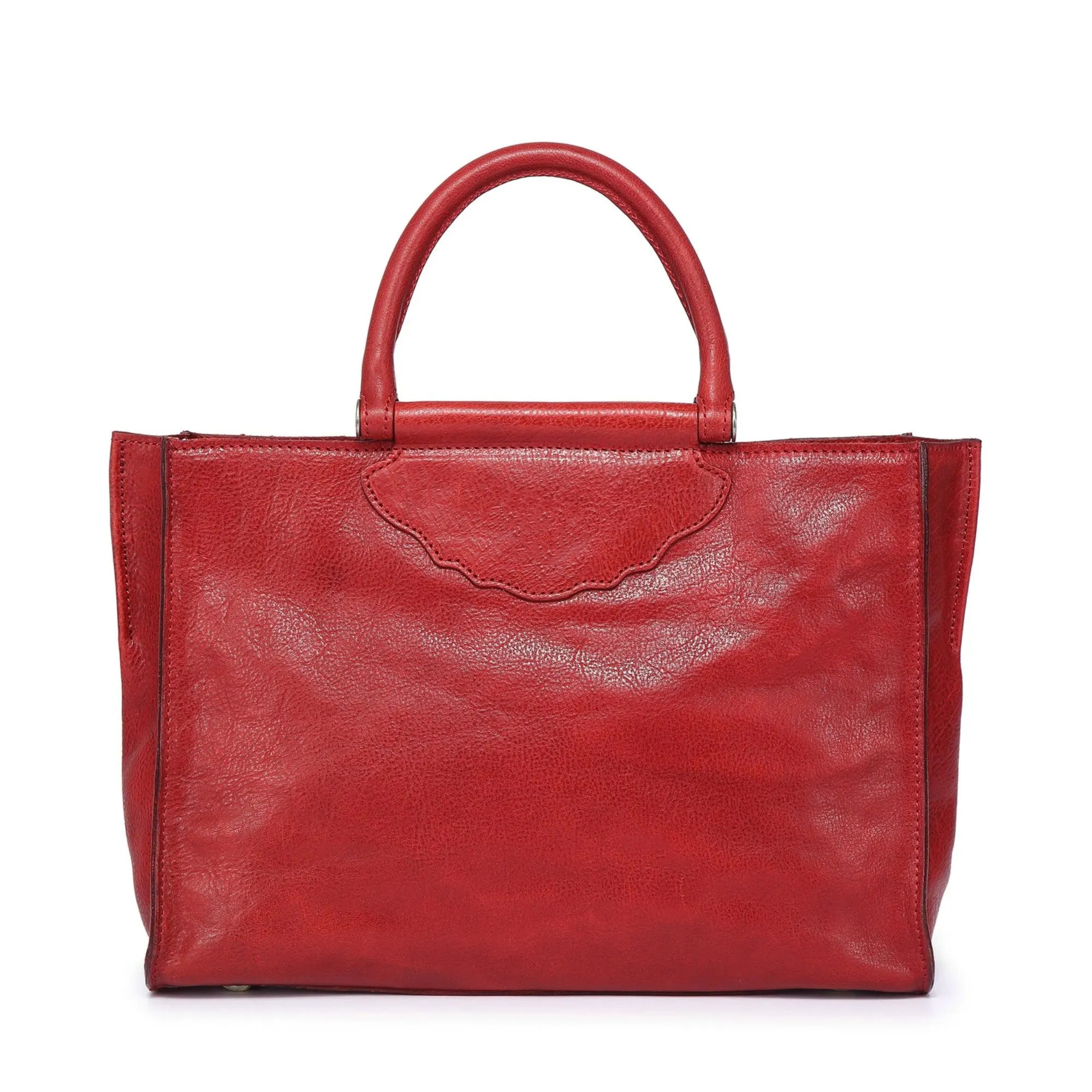Crafted from top-grain cowhide with a vintage distressing finish, the leather has a natural matte finish that feels delicate and durable. With continued use, the leather will develop a unique patina, making the bag more personal with each use. The leather is durable and built to last.