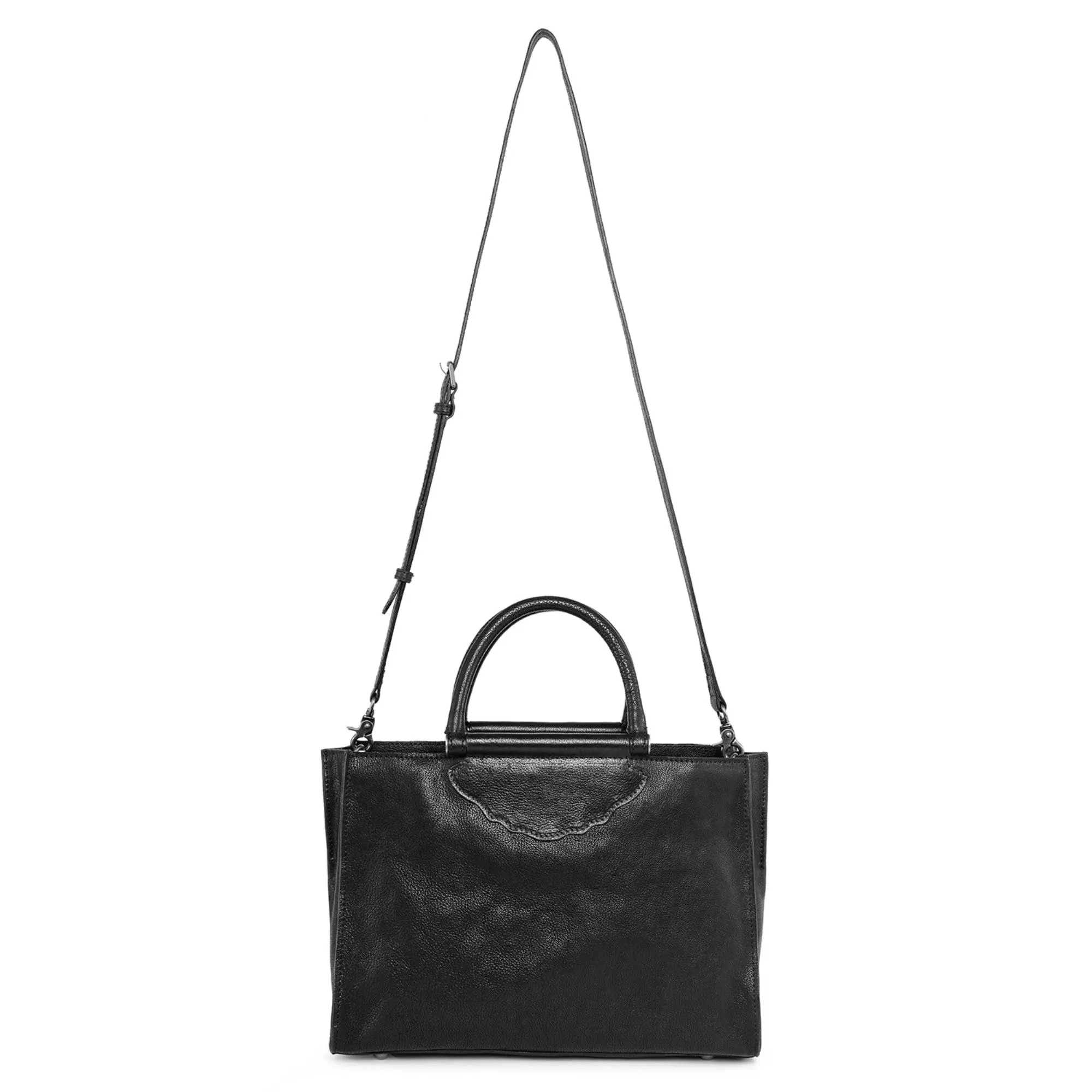 Crafted from top-grain cowhide with a vintage distressing finish, the black leather has a smooth, layered texture that develops a unique patina with use. This bag combines durability with a vintage feel, embodying both quality and style.