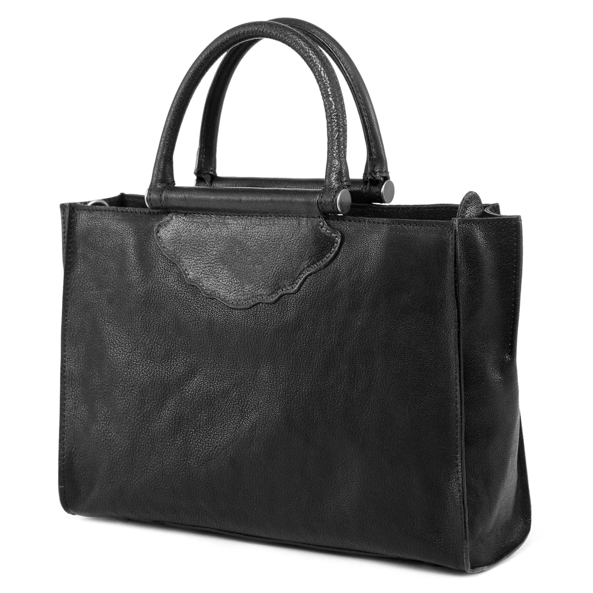 Bag Style: A classic handbag silhouette with simple, elegant lines. The black, vintage-inspired finish complements a wide range of outfits, from formal to casual, creating a sophisticated and stylish look.