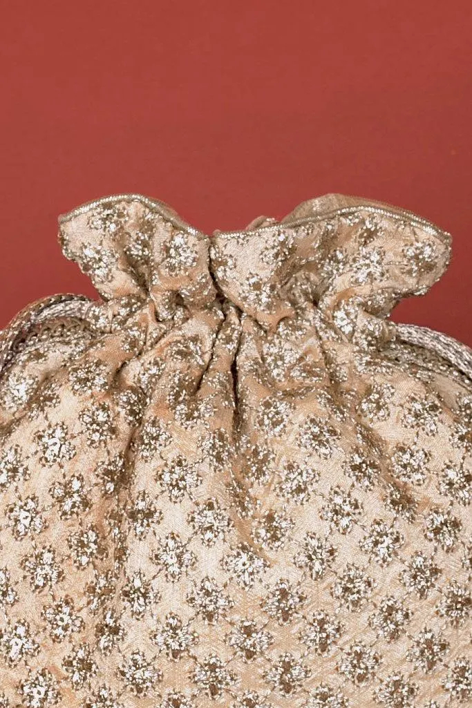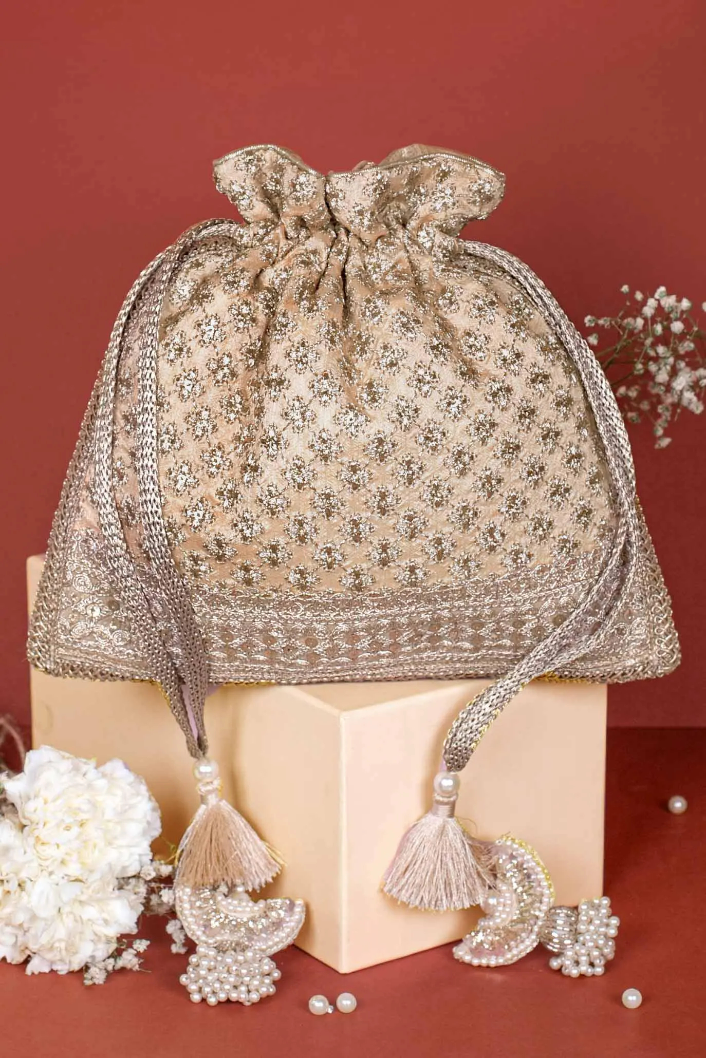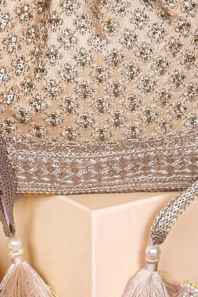 Be the first to review “Champagne gold embroidered tassel drawstring bag”
