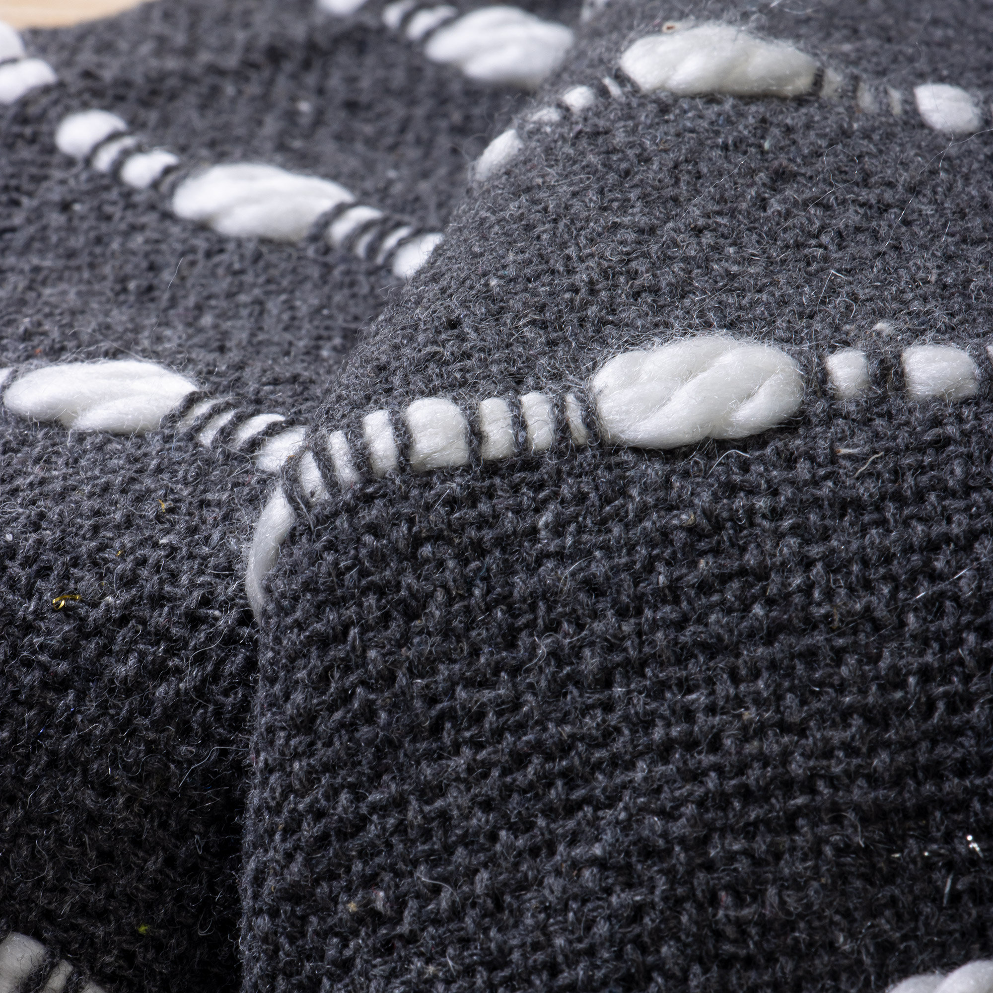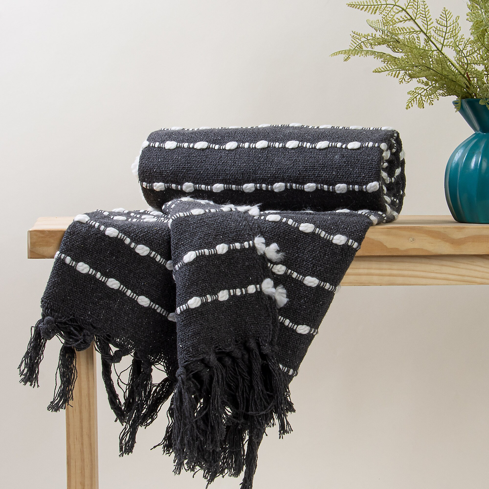 The striking contrast of charcoal gray and ivory is perfect for minimalist, industrial, and modern bohemian interiors. Easily drape over a sofa arm or ladder in one easy step for added pattern and dimension.