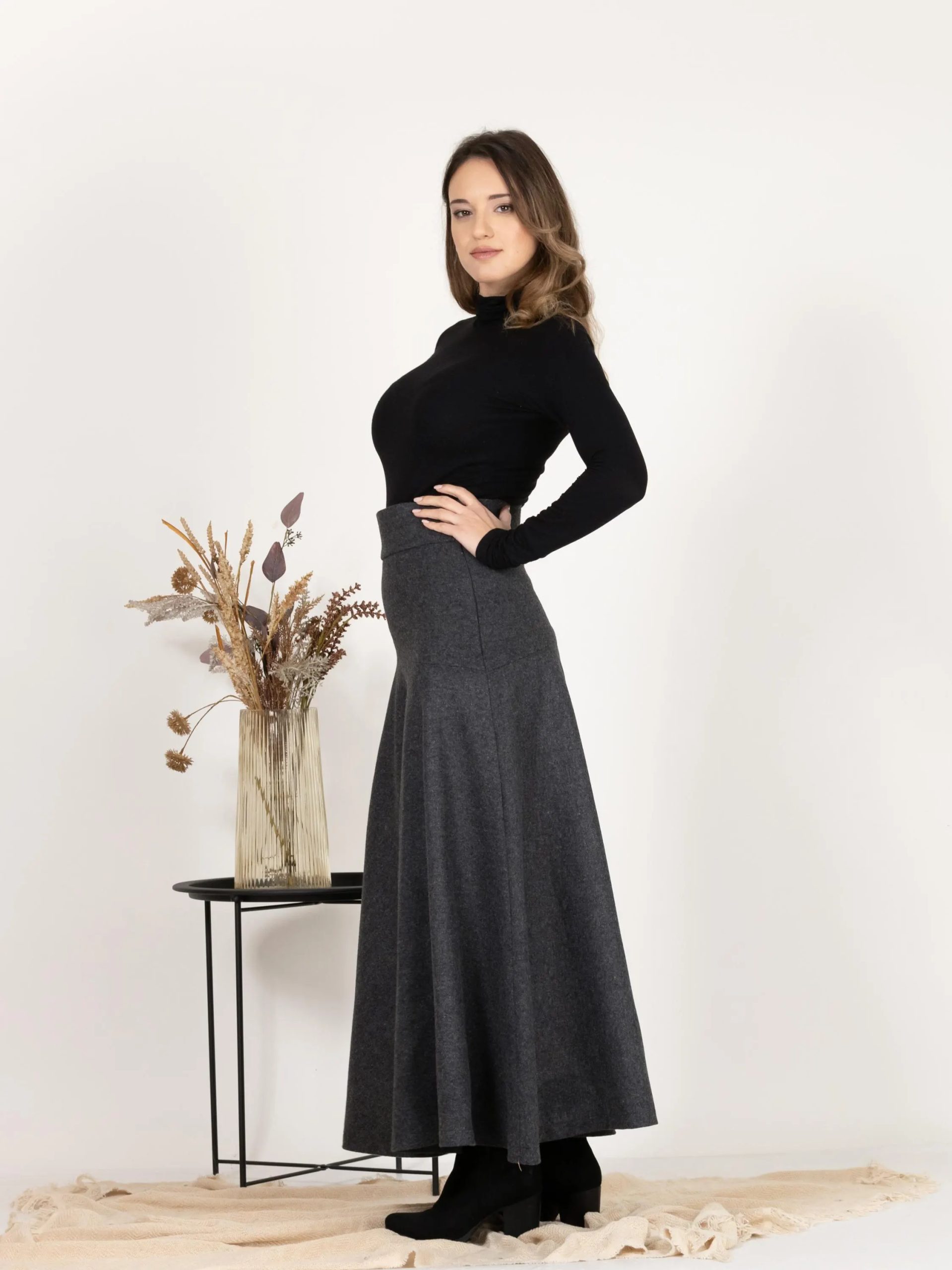 Be the first to review “Charcoal Wool Flared Midi Skirt”