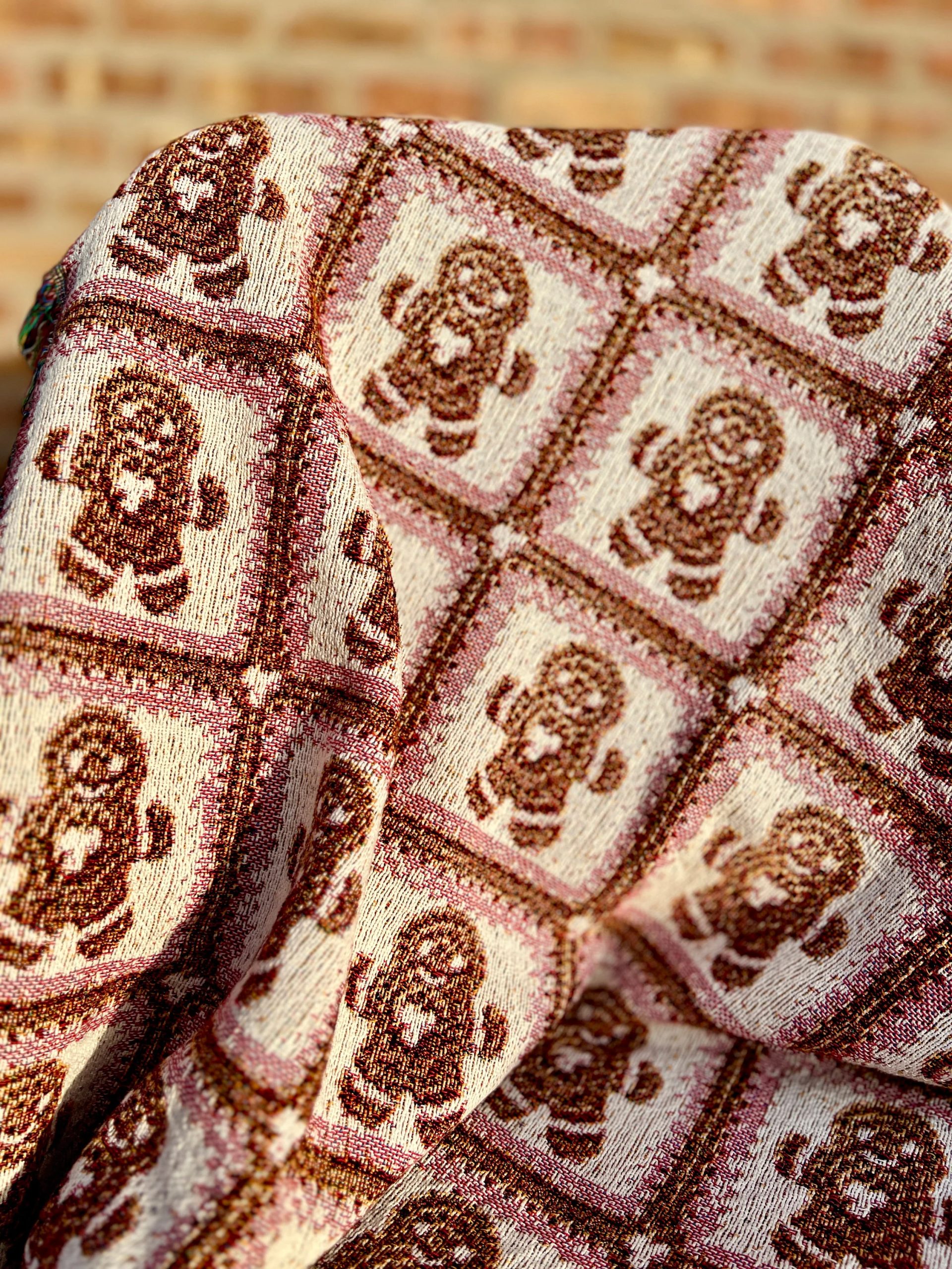 At Home: Spread it on your sofa and accessorize with Christmas decorations (gingerbread man ornaments, lights, and garlands) to create a “gingerbread man Christmas living room.” Use it as a blanket at the end of your bed, and let the sweet power of gingerbread envelop you every night, filling your dreams with Christmas sweetness.