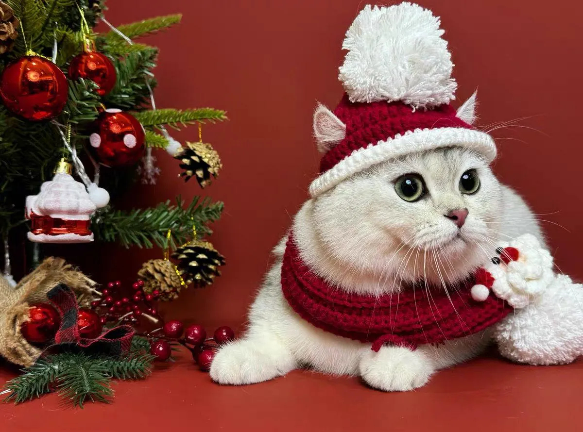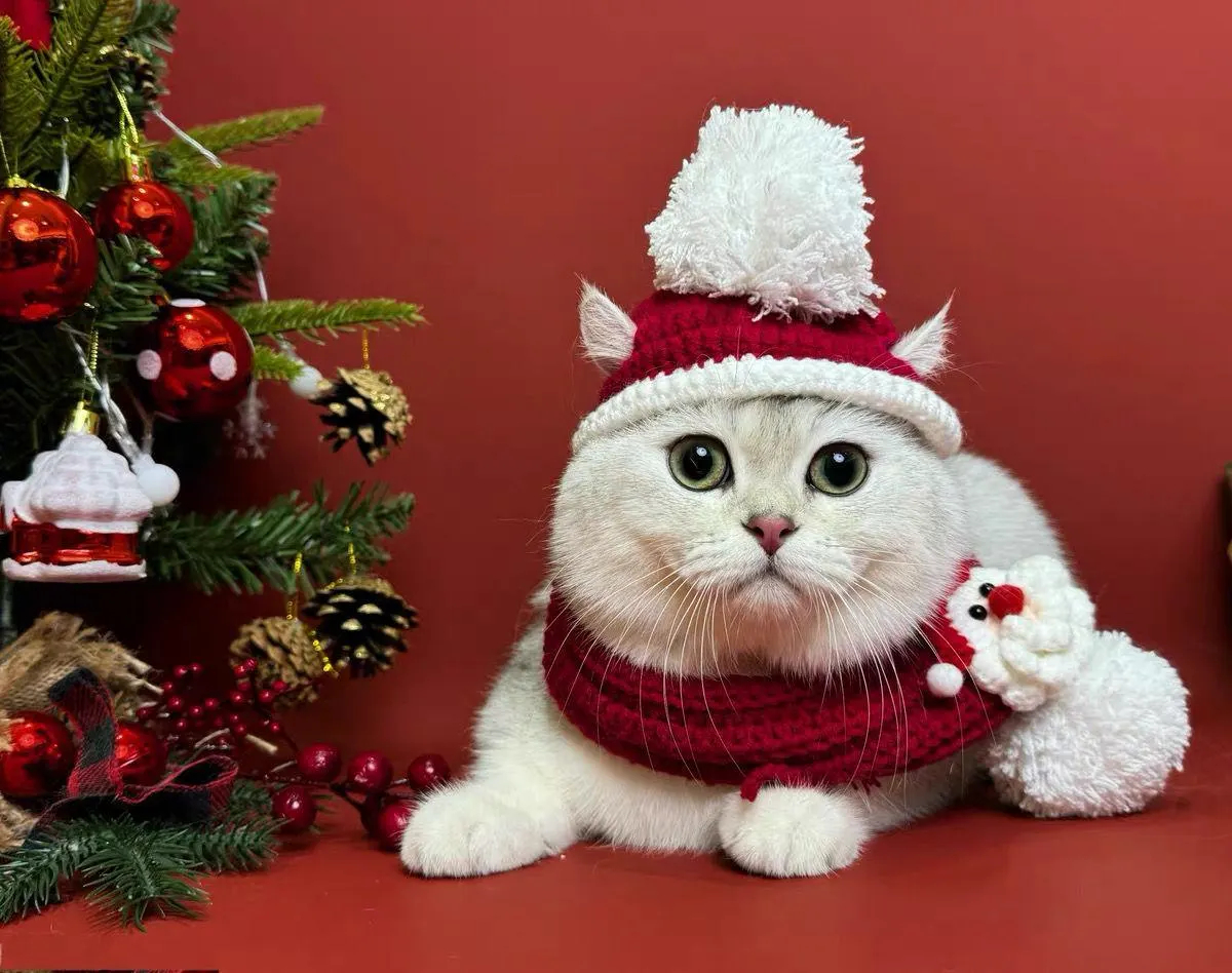 This Christmas red crochet cat hat and cap set is a limited-edition, adorable Christmas accessory tailor-made for felines. Based on classic Christmas red crochet, it features fluffy white pom-poms, cat-ear hats, and mini Santa Claus decorations, exuding an irresistible “soft and cuddly Christmas baby” charm. Whether for Christmas family photos, everyday cute snapshots, or holiday interactions, it instantly transforms your cat into a “soft and cuddly gift under the Christmas tree,” effortlessly creating a warm and comforting holiday atmosphere.