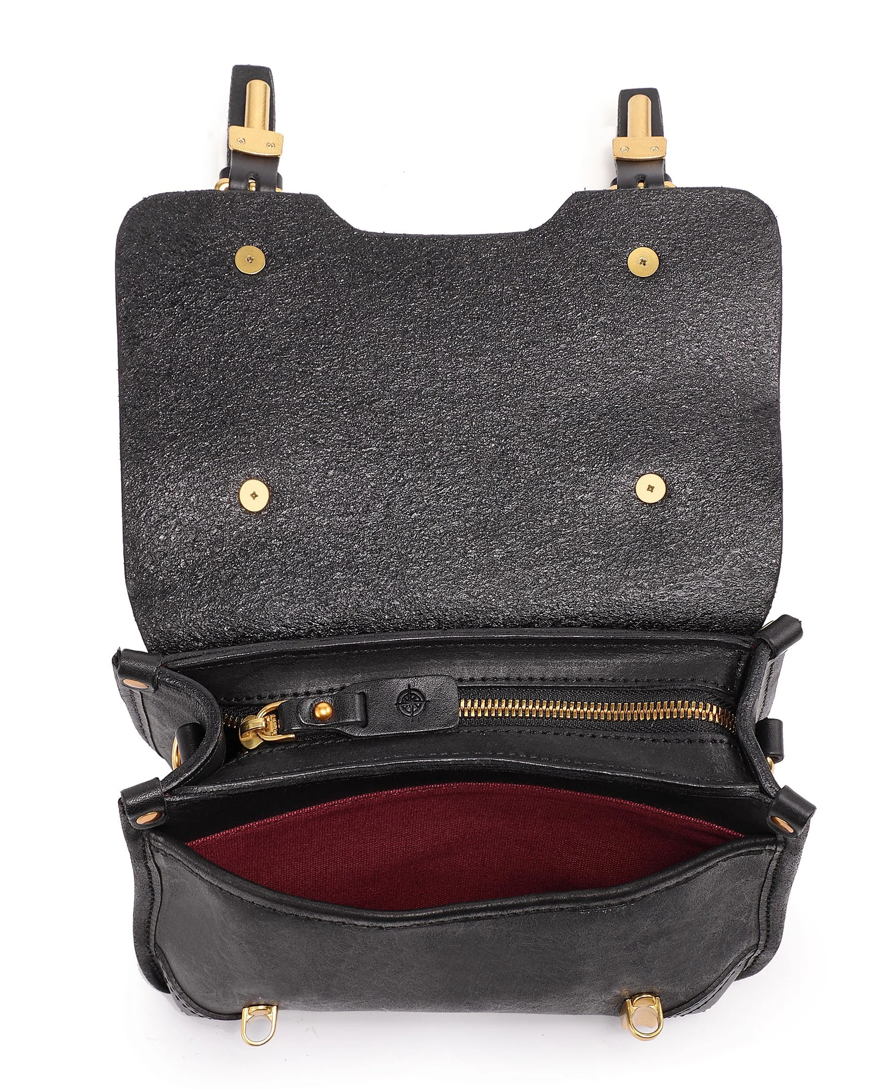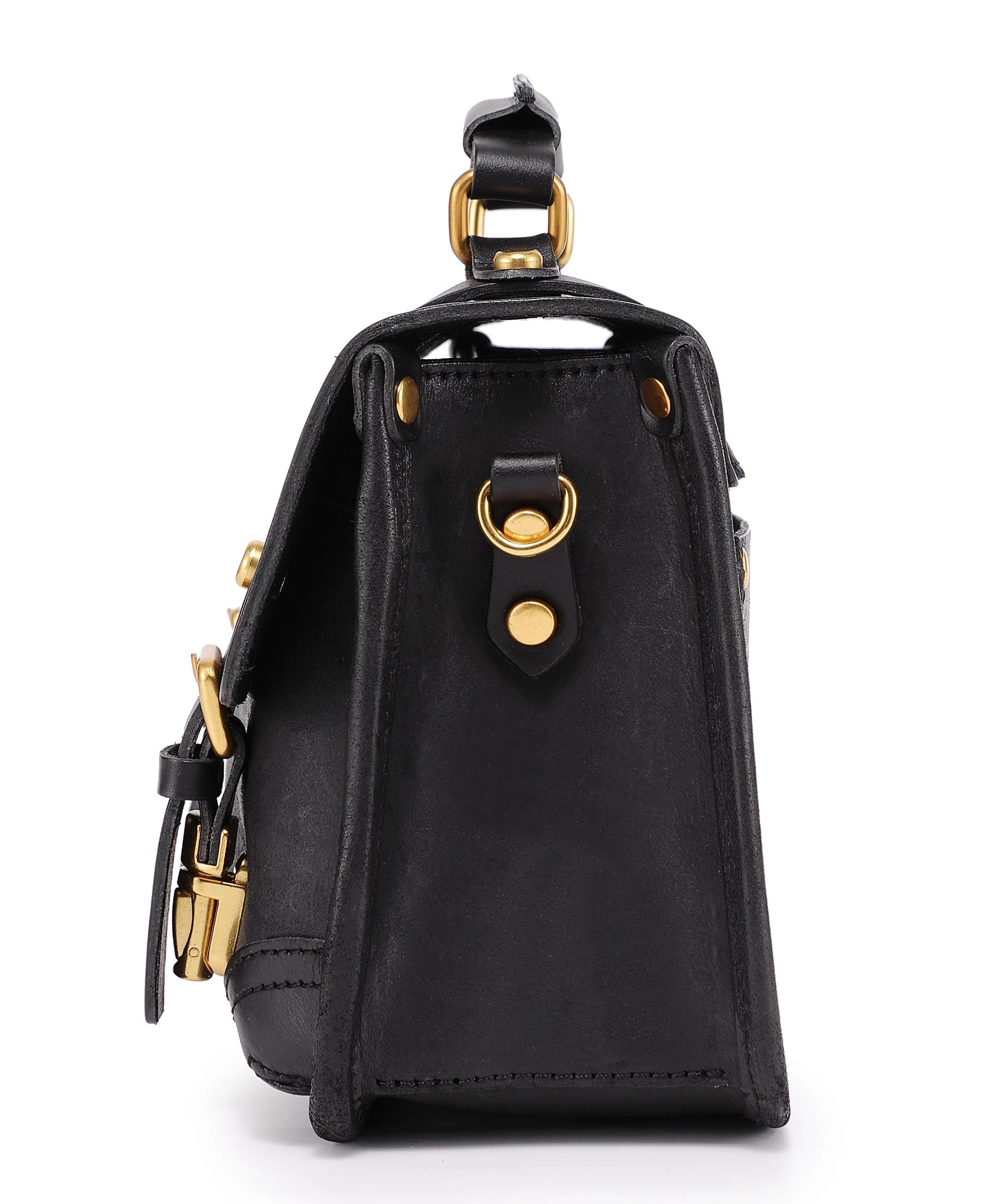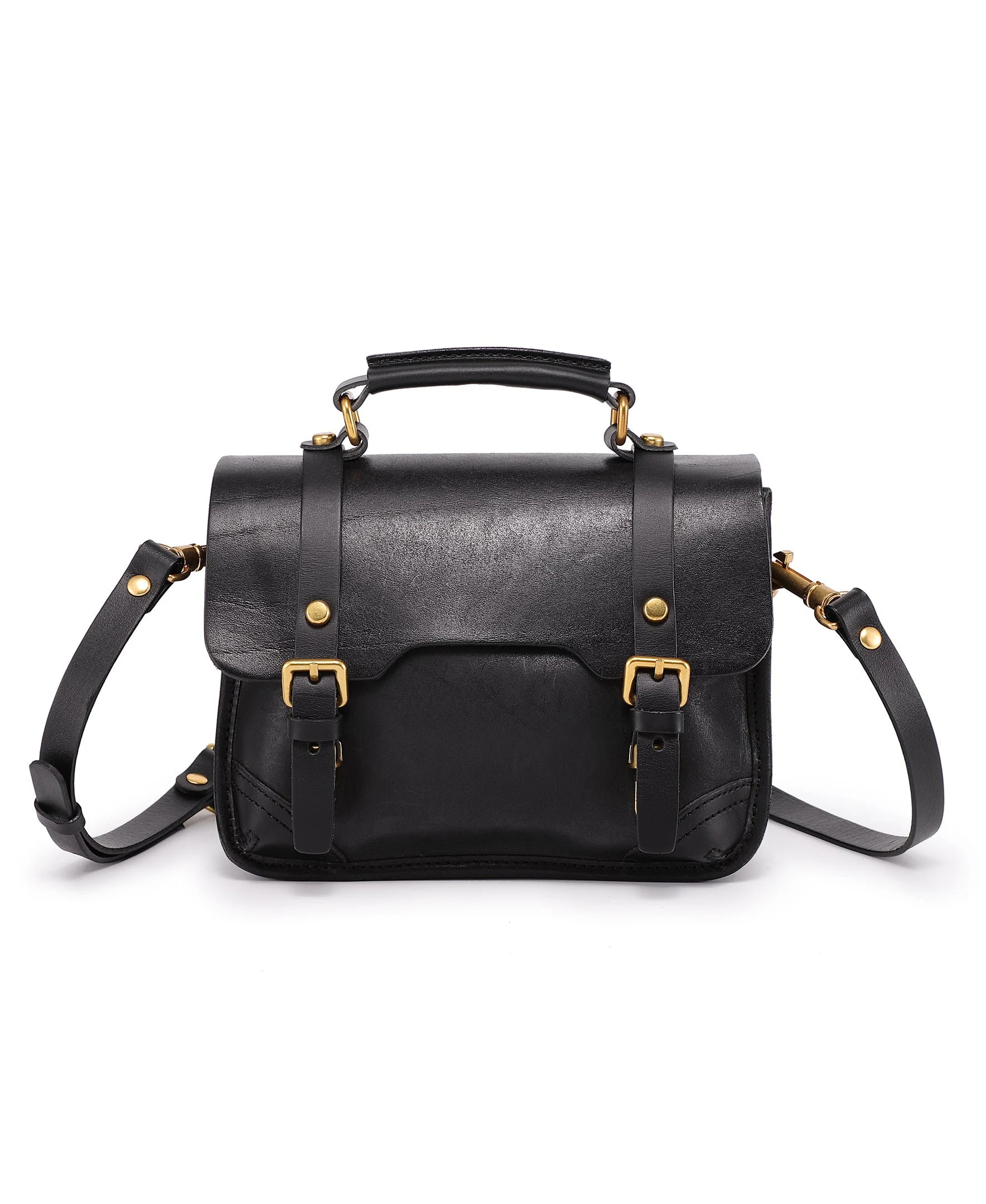 Hardware: The double front straps with vintage metal buckles offer convenient and decorative opening and closing. Metal rivets reinforce the bag’s structure, further enhancing its vintage appeal.