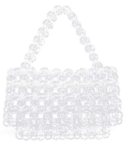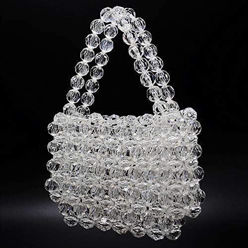 Elegant and light-catching, this clear beaded handbag is crafted with faceted crystal-like beads that shine beautifully under any light. The structured woven design and matching beaded top handle create a polished silhouette that’s perfect for weddings, parties, dinners, and special occasions.
