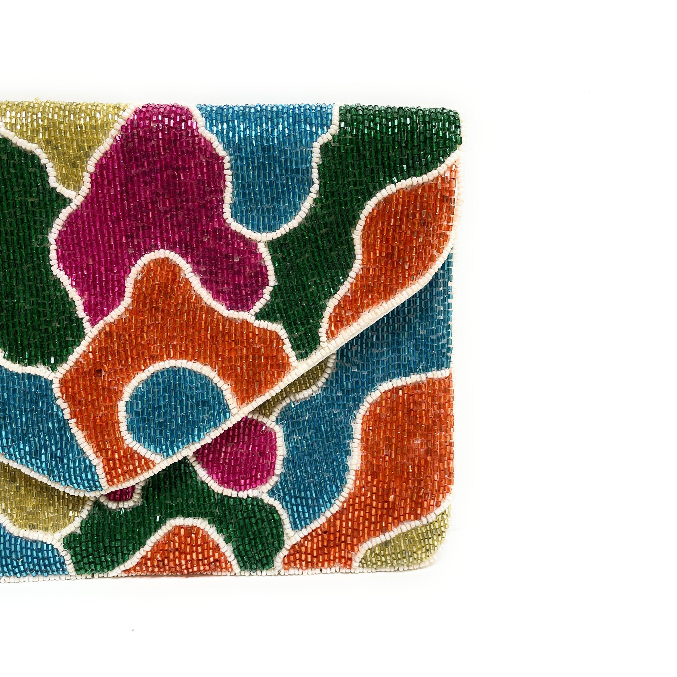 Inspired by modern abstract geometric patchwork, this bag boldly juxtaposes vibrant, saturated colors—red, green, blue, pink, and orange—to create a visual feast of irregular, interwoven color blocks. This bag embodies the avant-garde energy of contemporary art while also imbued with warmth through the delicate texture of hand-beaded detailing. It’s an eye-catching choice for art lovers and fashion avant-garde alike, showcasing their individuality.