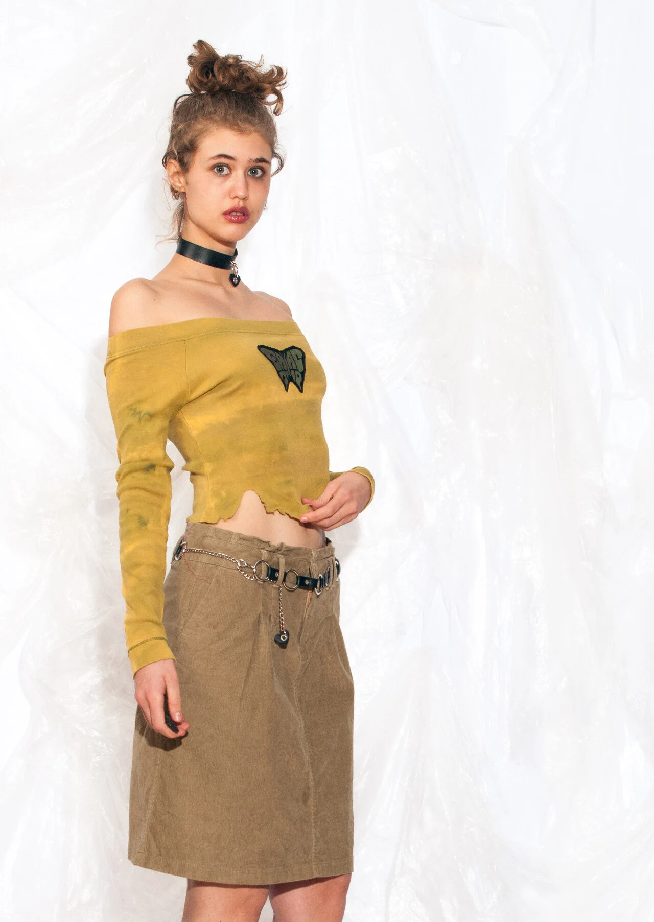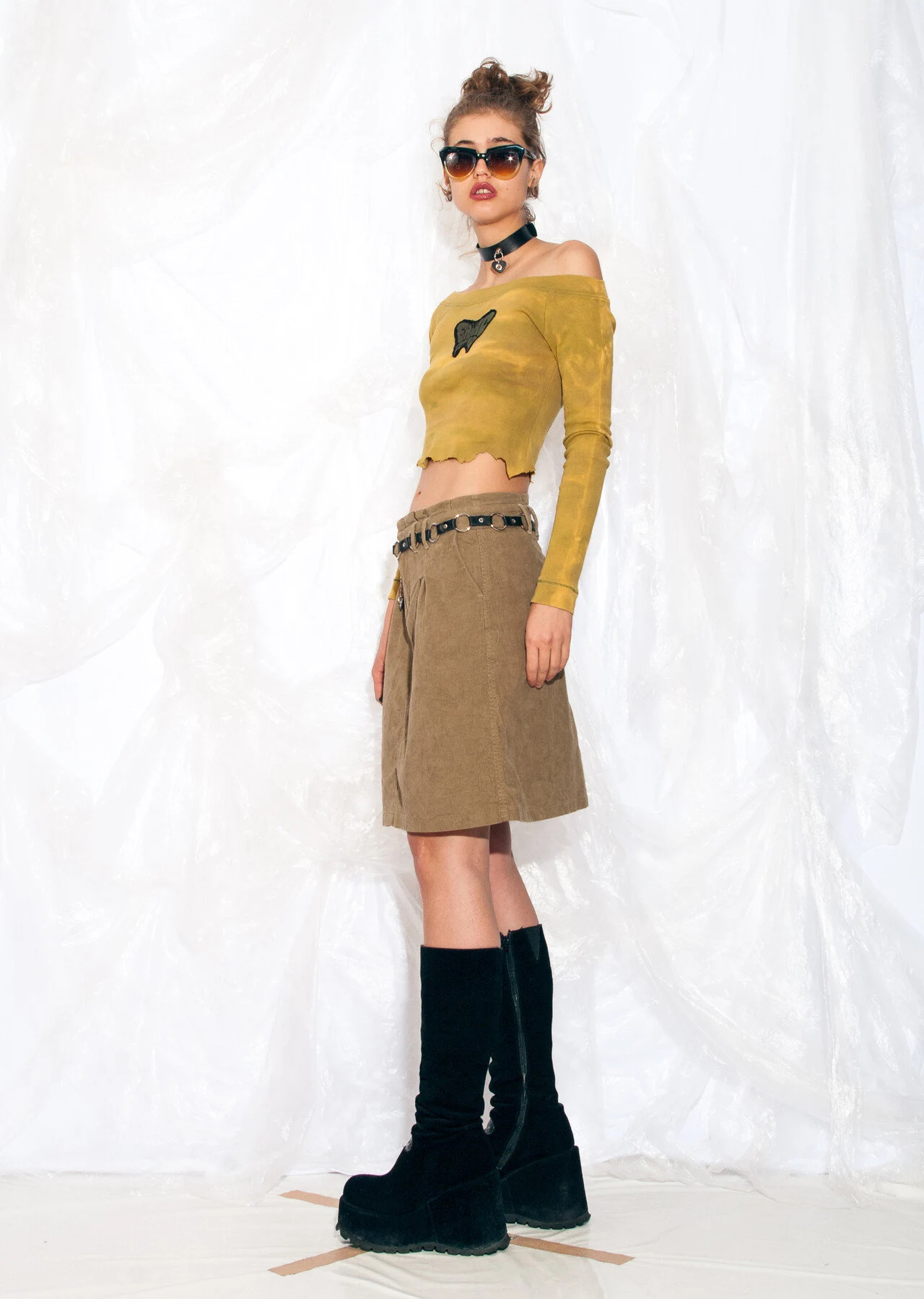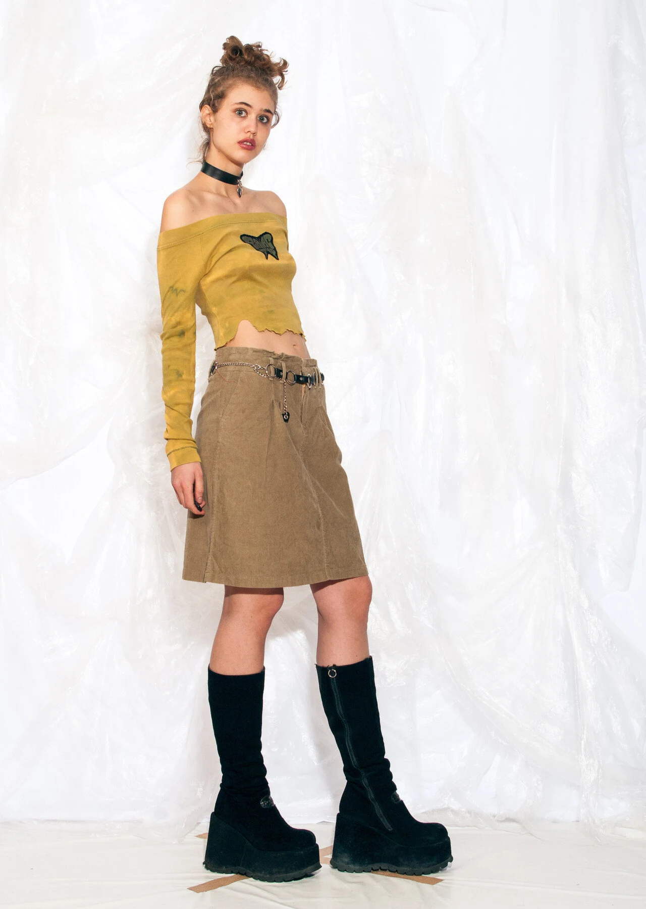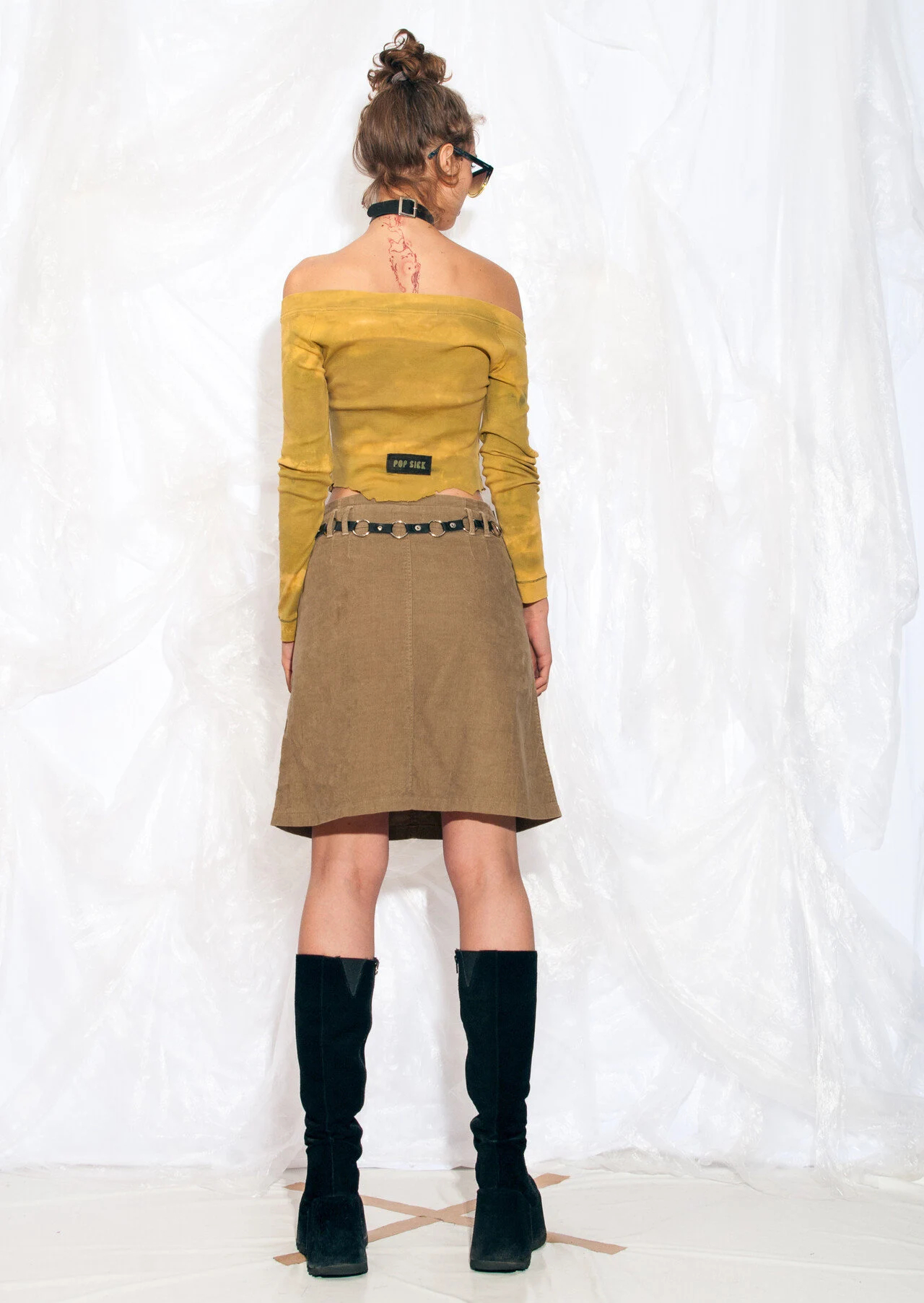 This relaxed A-line skirt is crafted from soft corduroy. Knife pleats flare from the waistband at the front, creating effortless volume, while the clean hem keeps the silhouette sharp—perfect with a T-shirt, sweater, or crisp shirt.