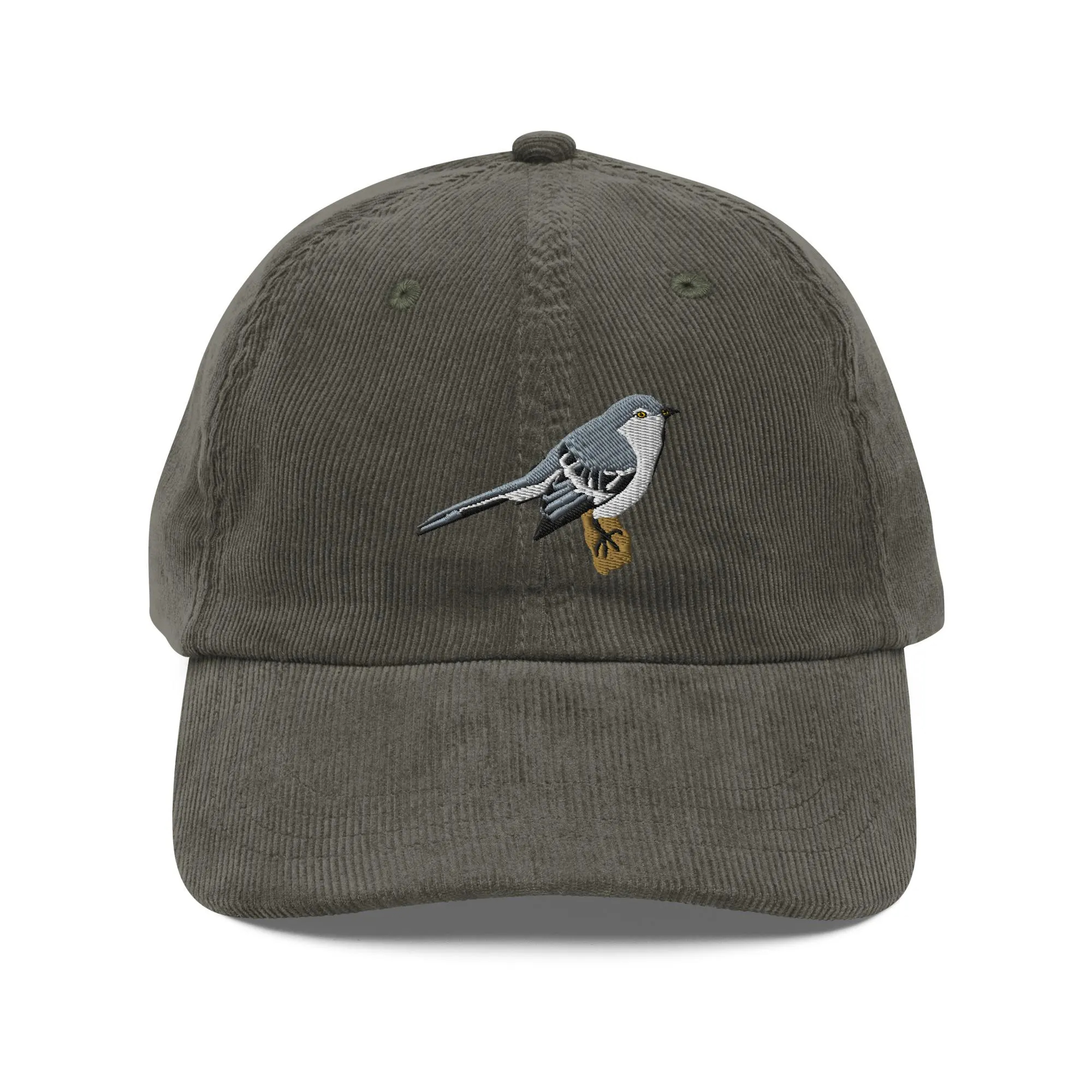 Corduroy Grey Songbird Embroidered Hat