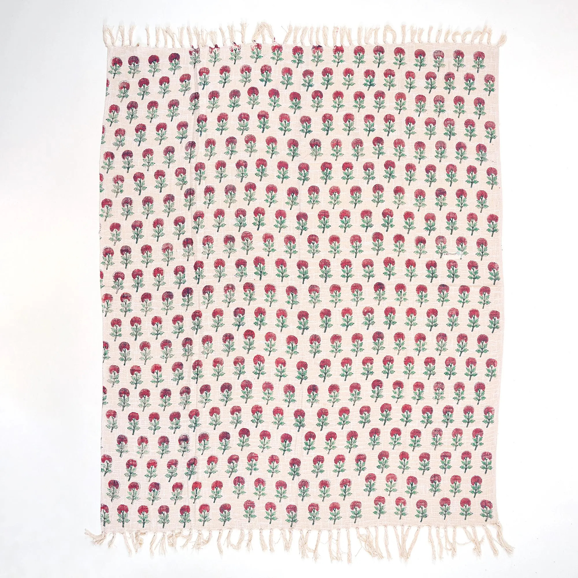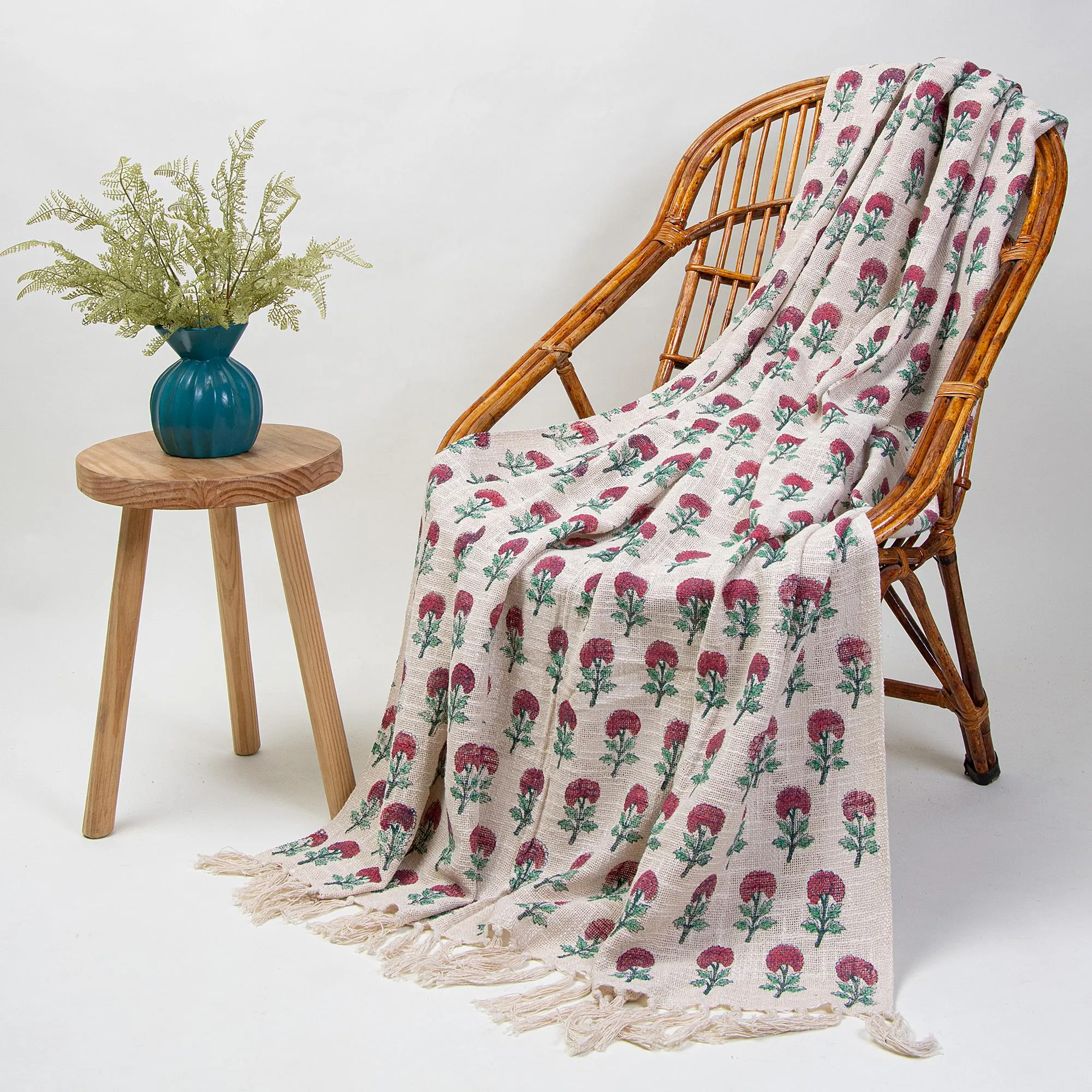 The cream x pink/green pattern brings a rustic warmth without being overpowering—perfect for Scandinavian, farmhouse, or bohemian interiors. Easily drape it over a rattan chair, sofa armrest, or ladder for a touch of color, print, and texture.