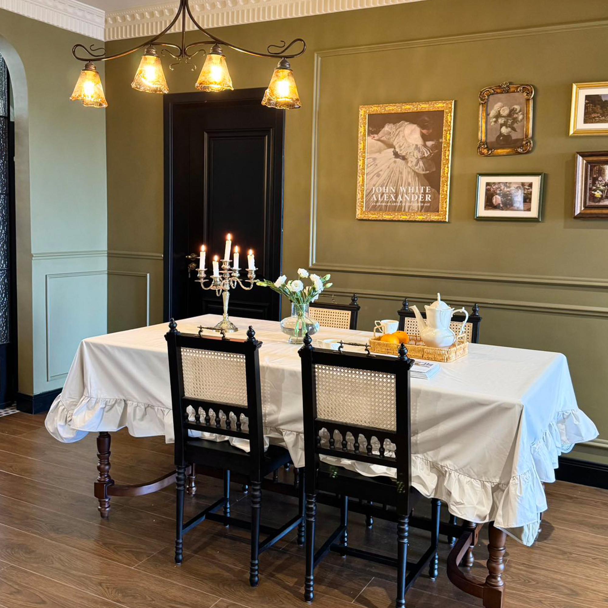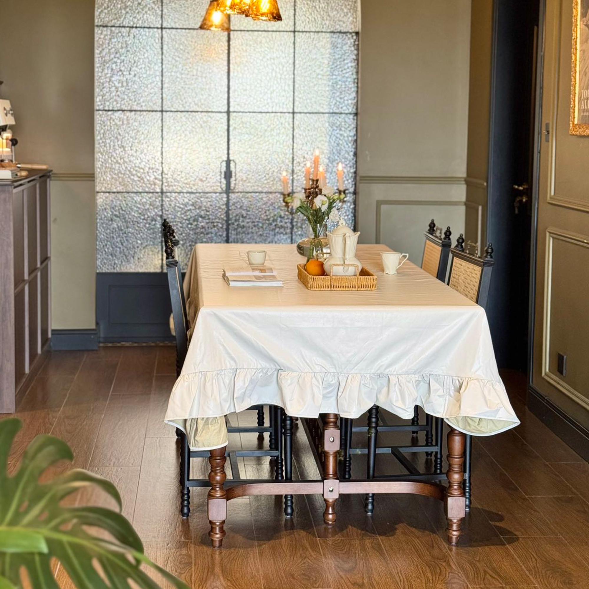 Featuring a soft cream hue, delicate ruffles frame the edges, creating a light, sweet French ambiance. This plain color is versatile, suitable for any tableware or decor, easily adding a touch of cleanliness, gentleness, and formality to your everyday table.