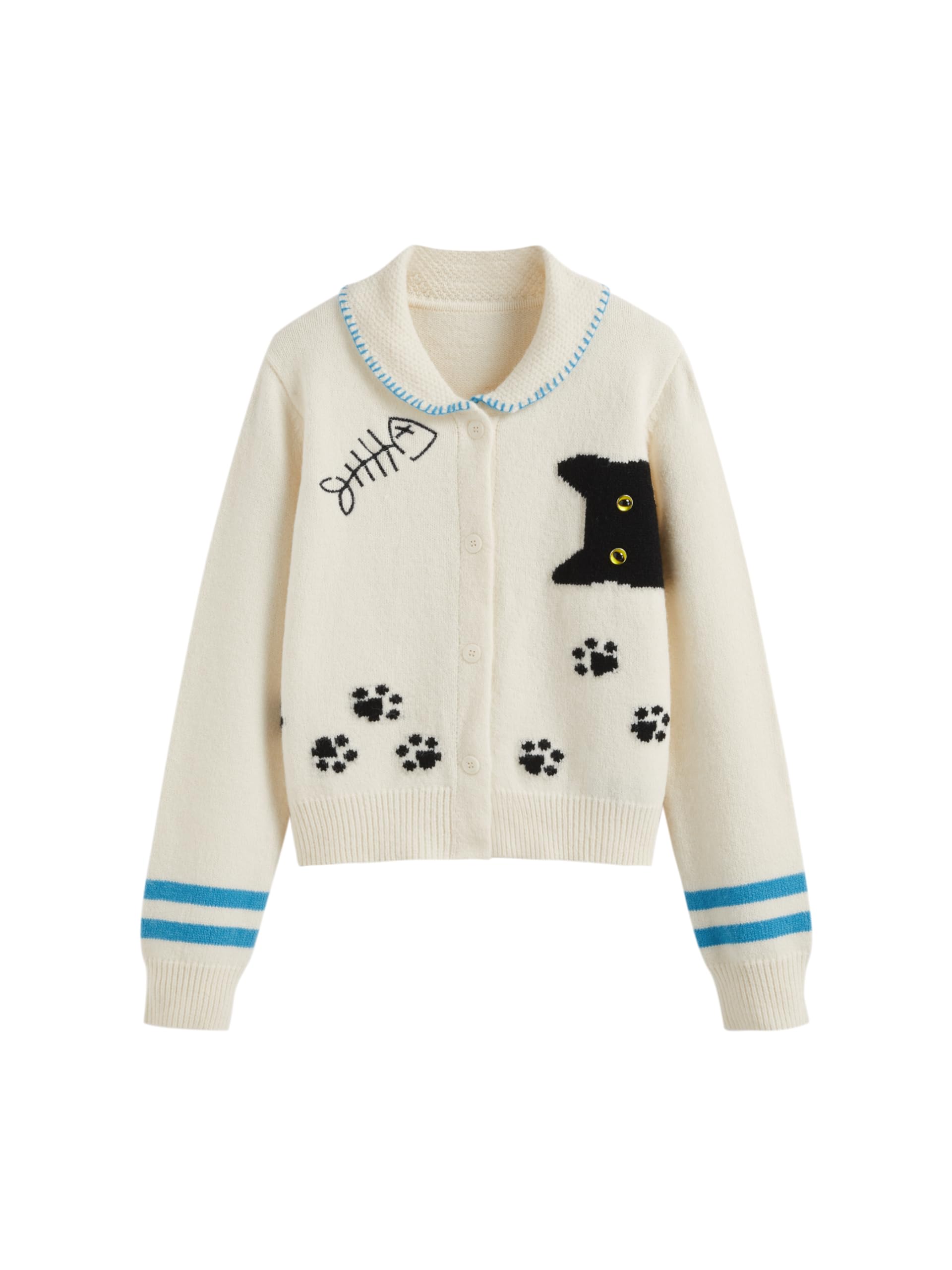 Be the first to review “Creamy cat pattern striped cuff cardigan”