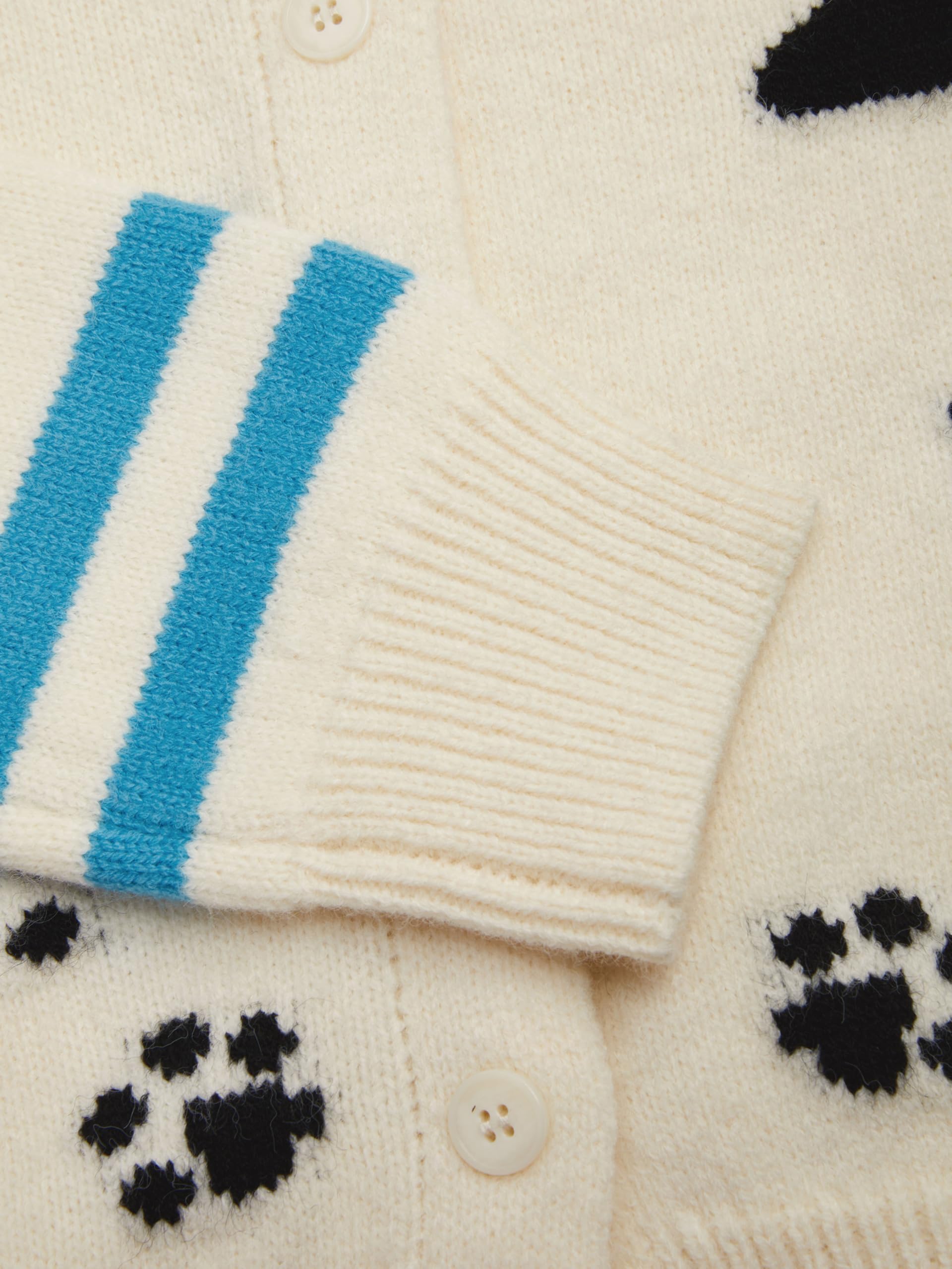 Paw print jacquard and herringbone embroidery create a fun and whimsical patterned look