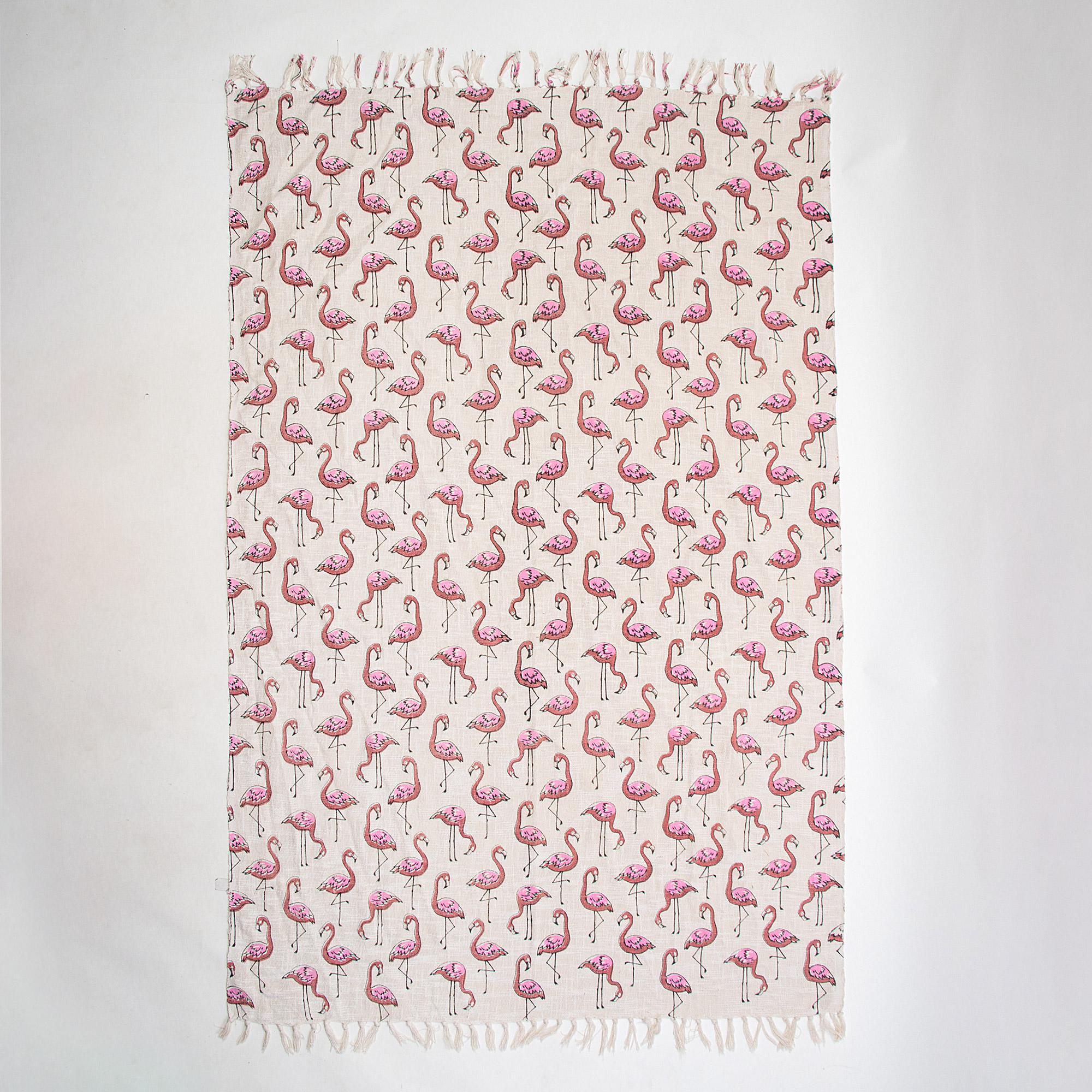 The cream and pink flamingo pattern brings a sunny, tropical feel, perfect for the beach, the country house, or any home. Easily drape it over a chair, sofa arm, or ladder for an effortless addition of color, pattern, and texture.