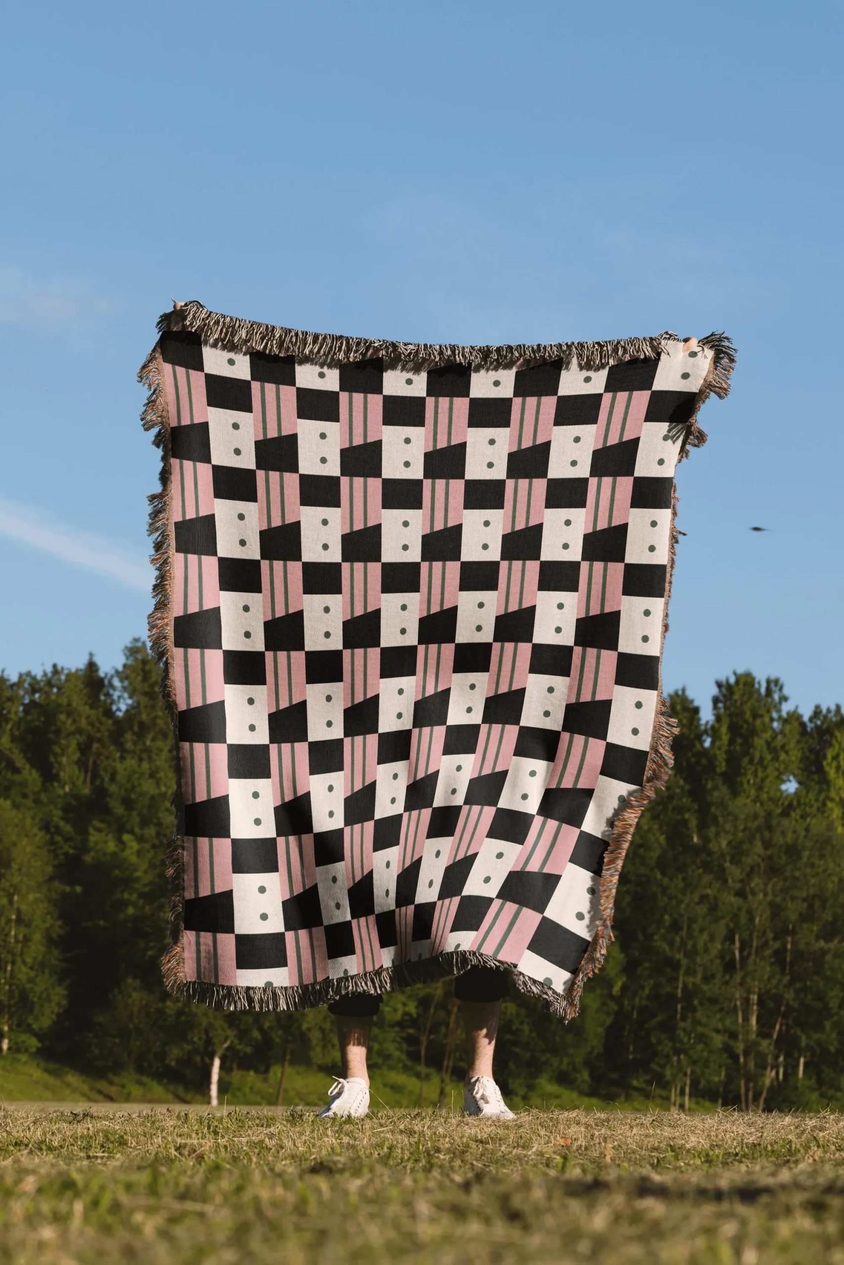 Decorative Fringe Edges – Finished with fringe trim on all sides, adding a relaxed, decorative frame to the bold check pattern.
