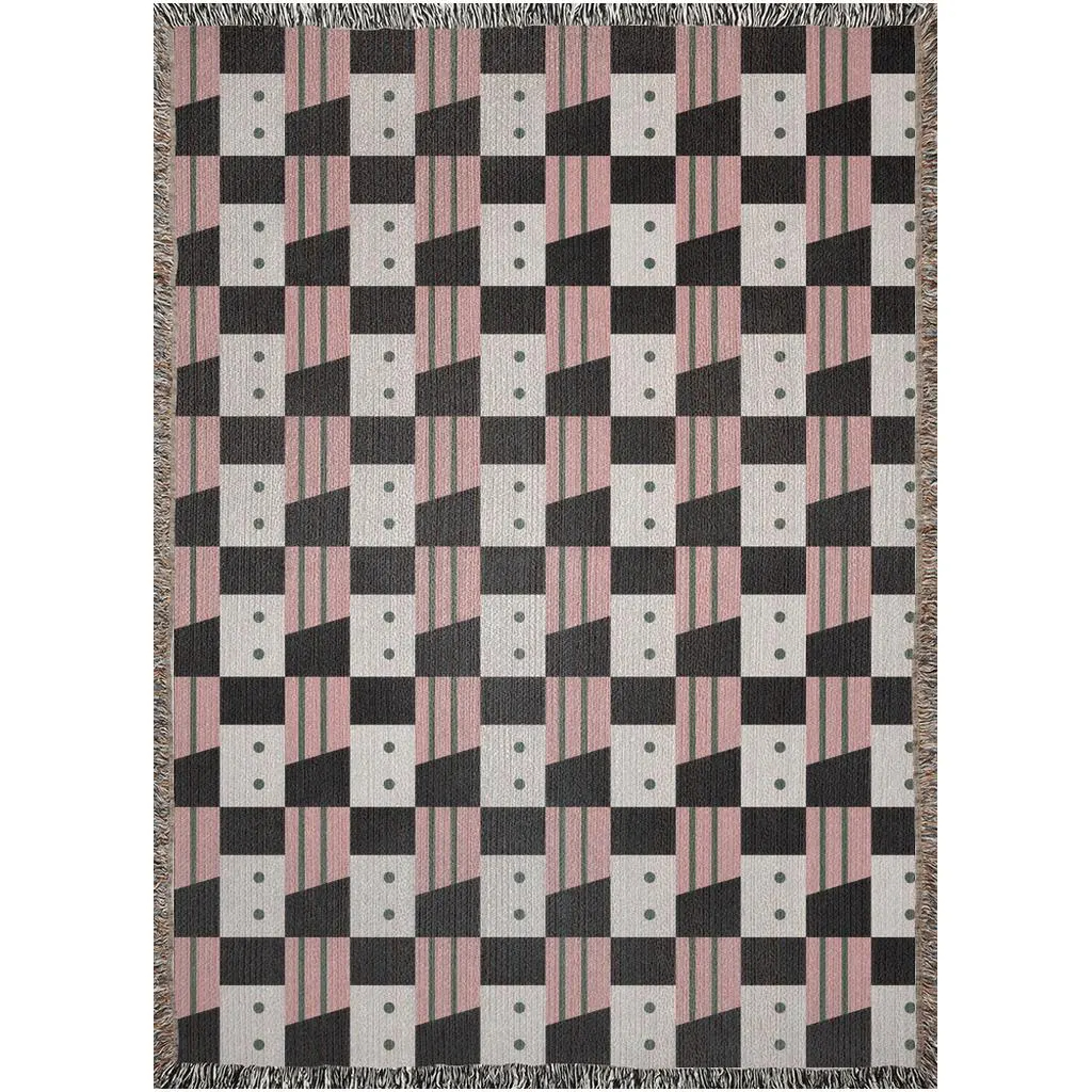 Dotted Checkerboard Pattern – Offset checker squares with subtle dot accents create a playful yet structured geometric design inspired by modern and mid-century styles.