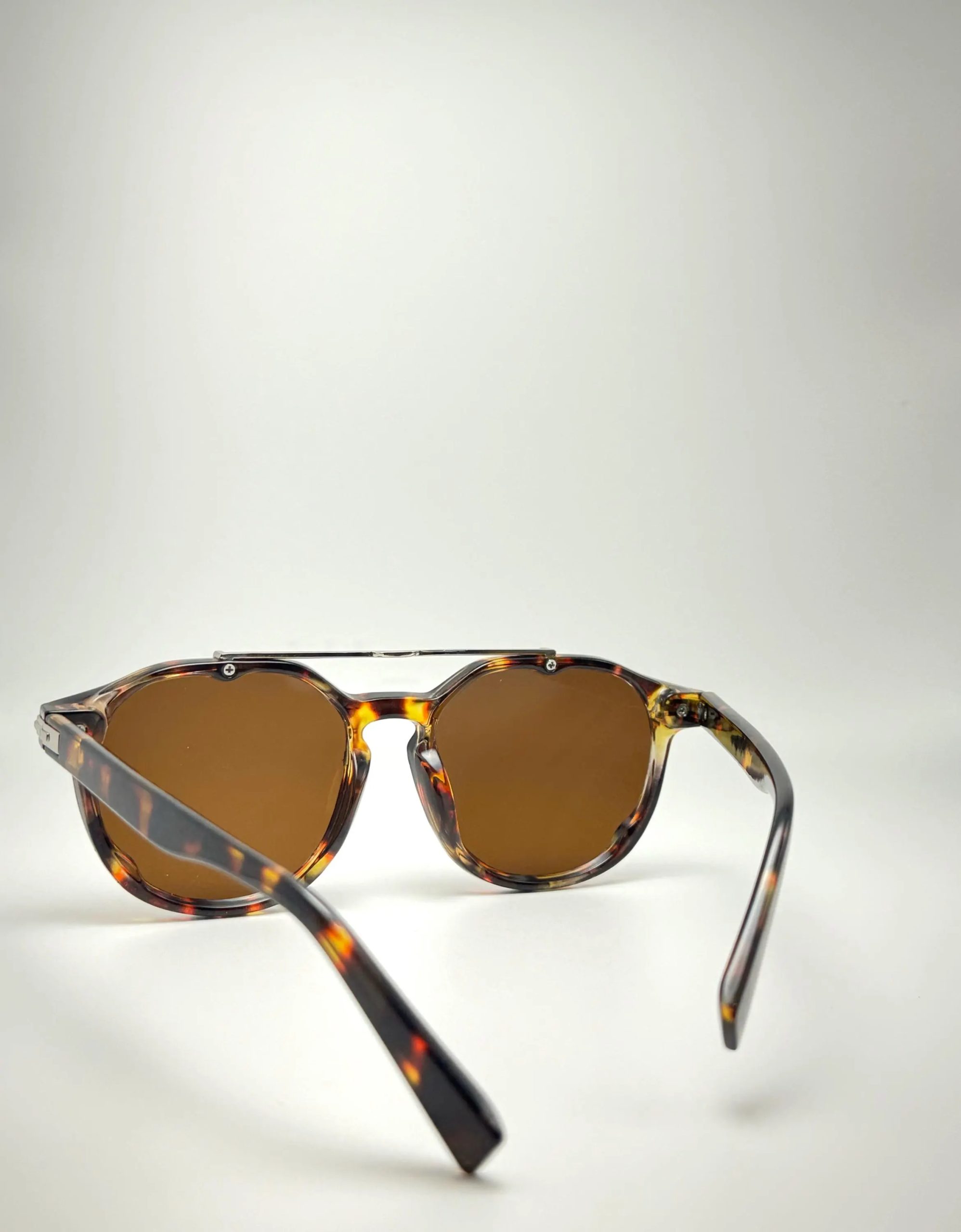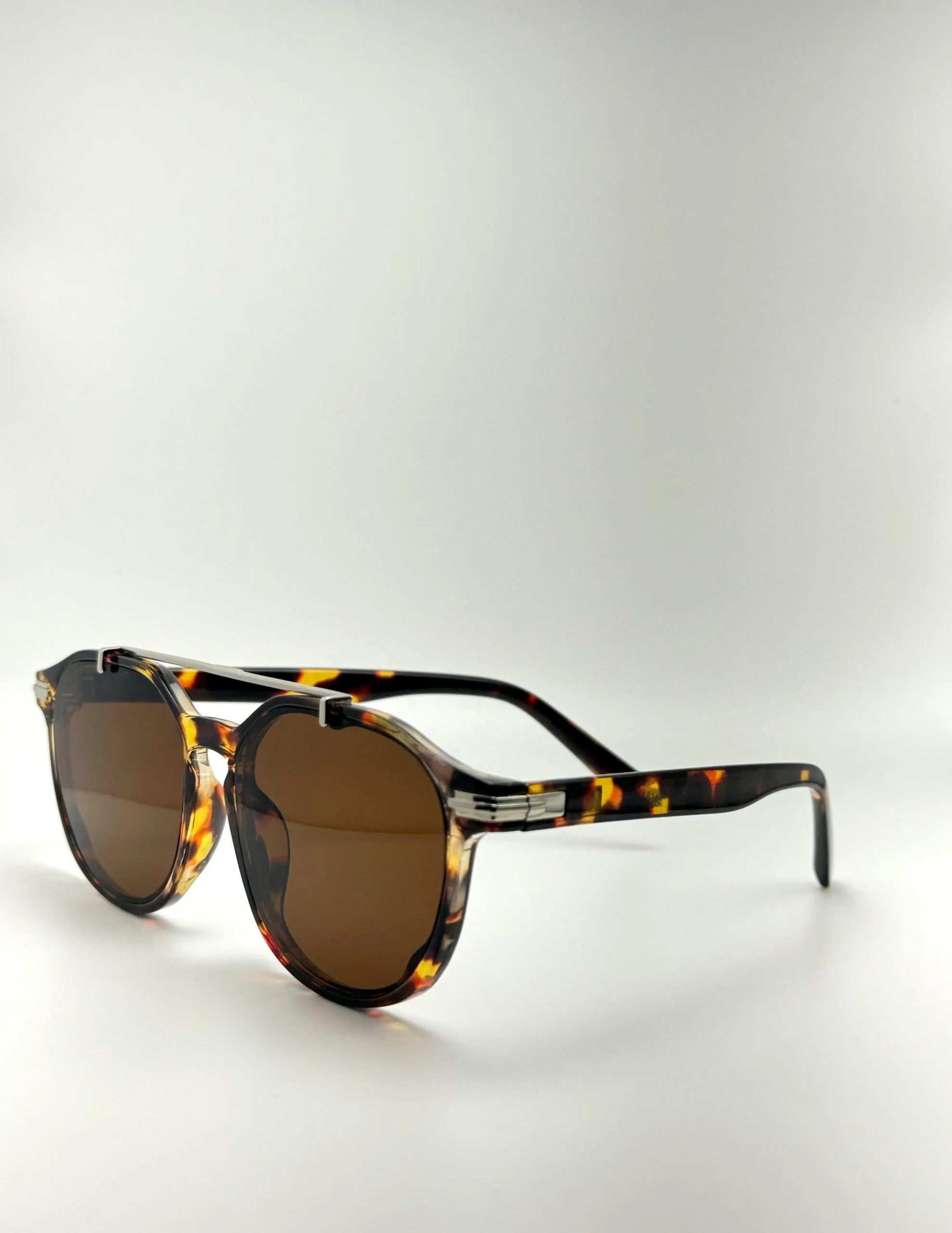 This is a pair of round sunglasses with a brown tortoiseshell pattern, emphasizing a “retro double-bridge, understated luxury feel.” The core design features a brown and yellow tortoiseshell acetate frame, retro double-bridge metal embellishments, and light brown soft lenses. The classic round frame softens facial lines (reducing the angularity of a long face and narrowing the contours of a round face), while the double-bridge metal structure enhances the retro vibe, avoiding the monotony of a basic style. The brown tortoiseshell pattern, naturally dyed, presents a warm, retro texture, and the light brown soft lenses offer both UV400 sun protection and soft light transmission, reducing glare in strong sunlight and maintaining visual clarity in low light. It’s a versatile “retro + understated luxury” item—the double-bridge design exudes confidence, while the tortoiseshell frame adds texture, easily fitting into various scenarios such as retro commuting, casual dates, and more.