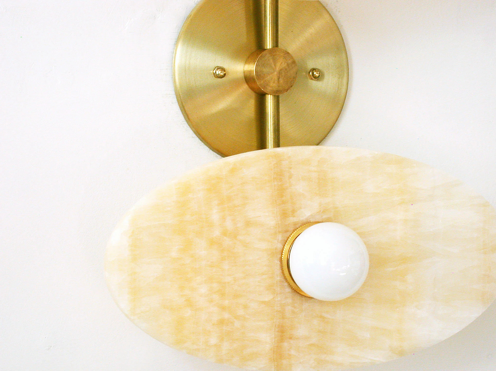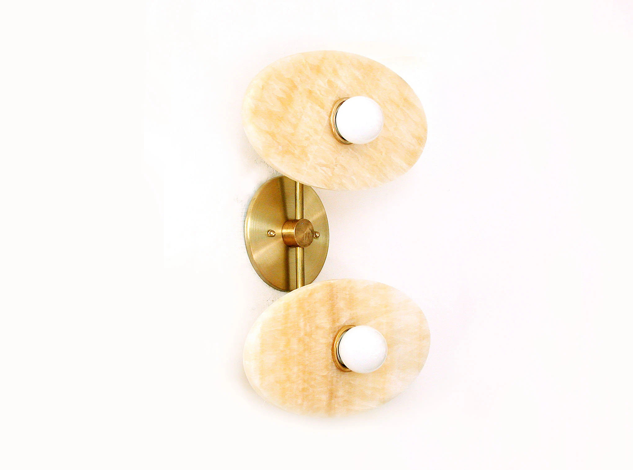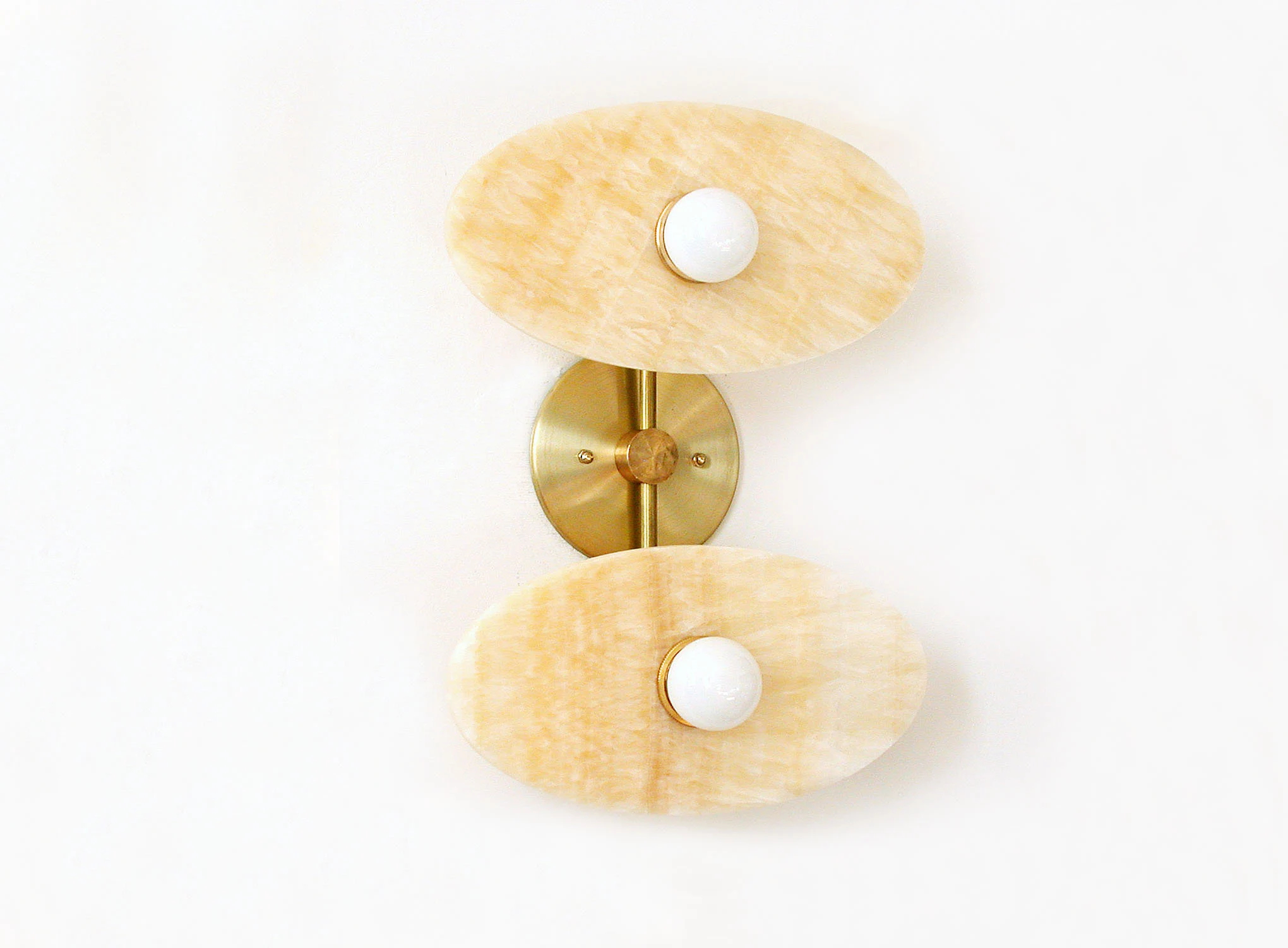 Be the first to review “Double Oval Honey Stone and Brass Wall Sconce”