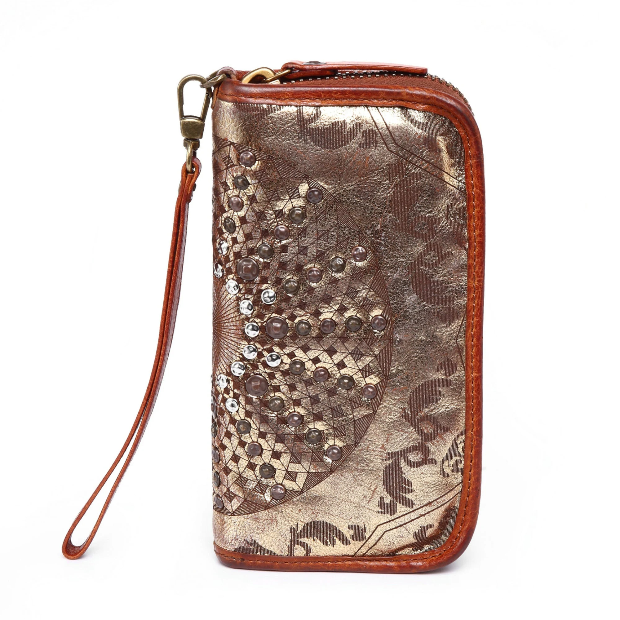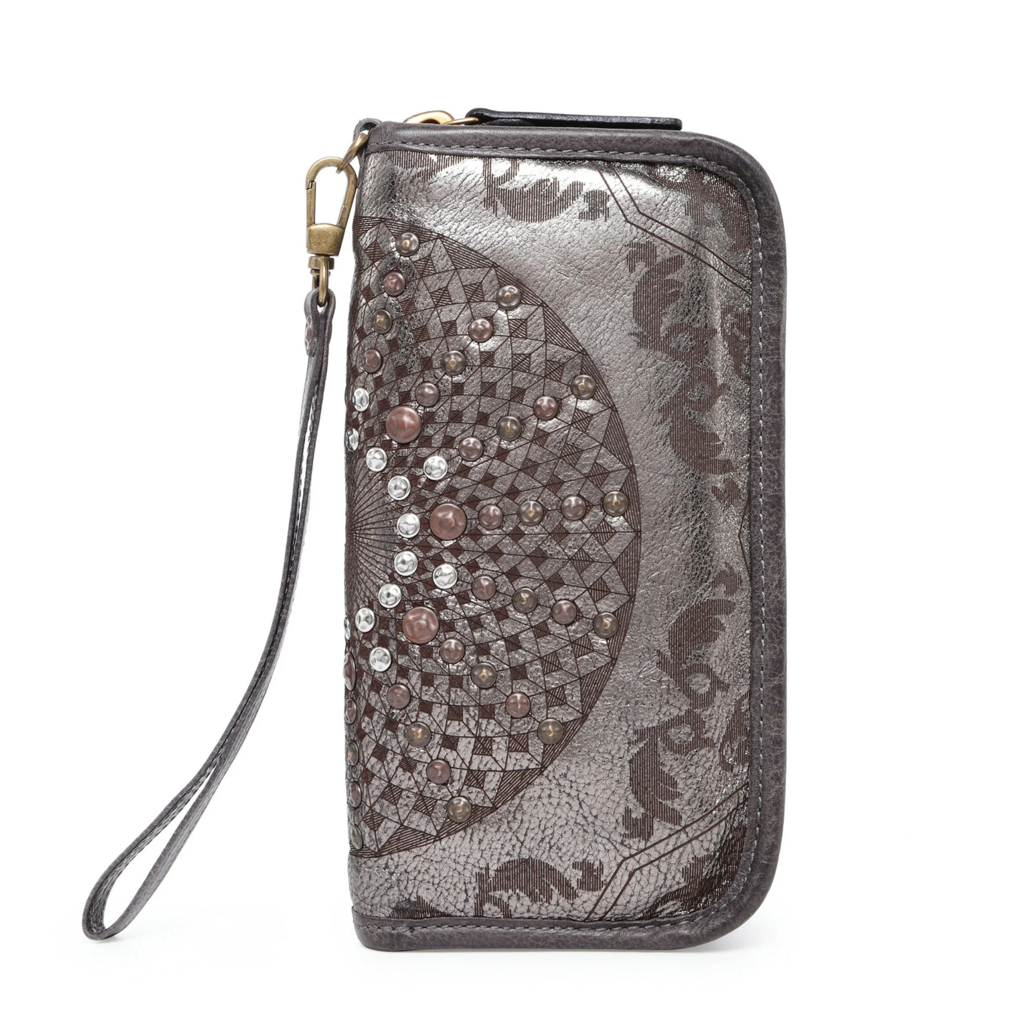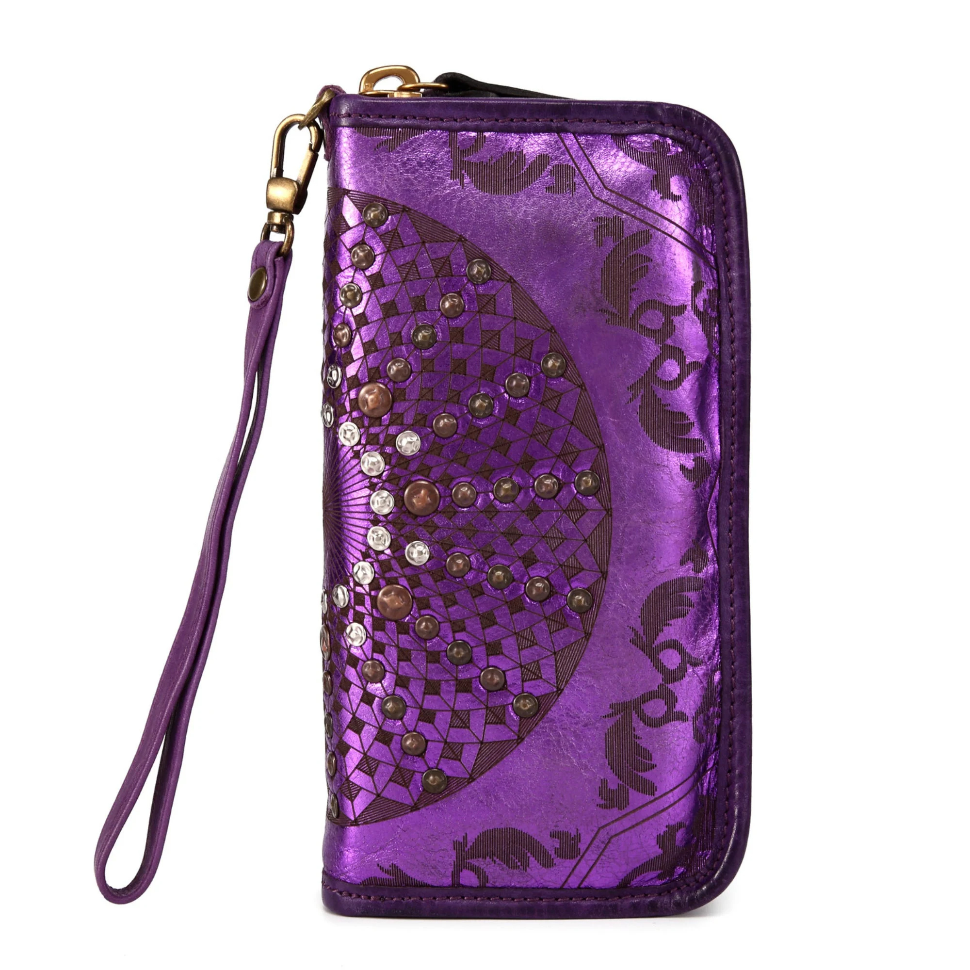 Ethnic style rivet shiny long wallet