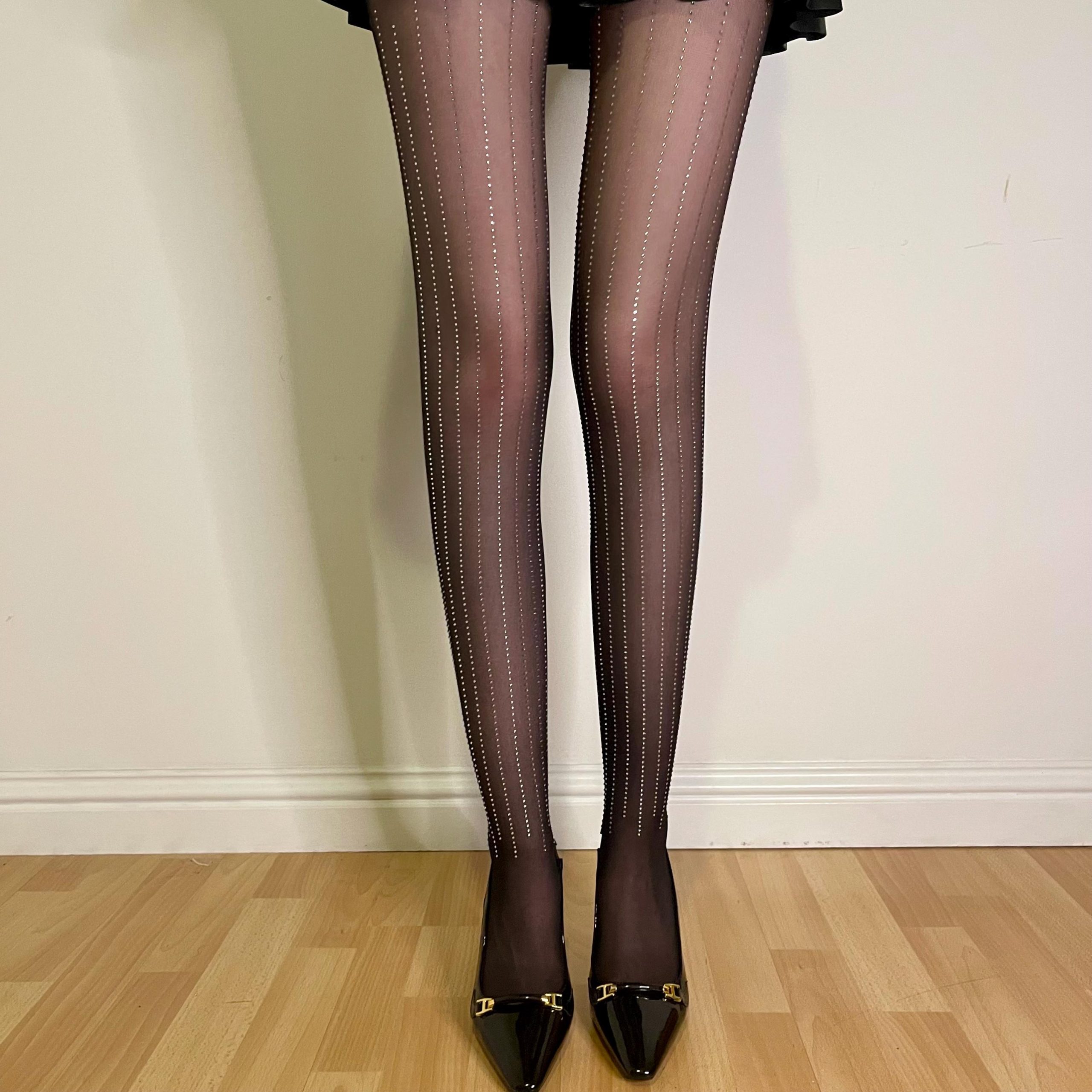 Flash diamond vertical stripe design: The black mesh base is combined with vertical stripes of flash diamond decoration, which adds a sense of light luxury to the blingbling. The diamond jewelery flashes with the lines of the legs when walking, injecting eye-catching highlights into the outfit. It is completely different from ordinary fishnet stockings. It is the “eye-catching key” for parties and light luxury style.