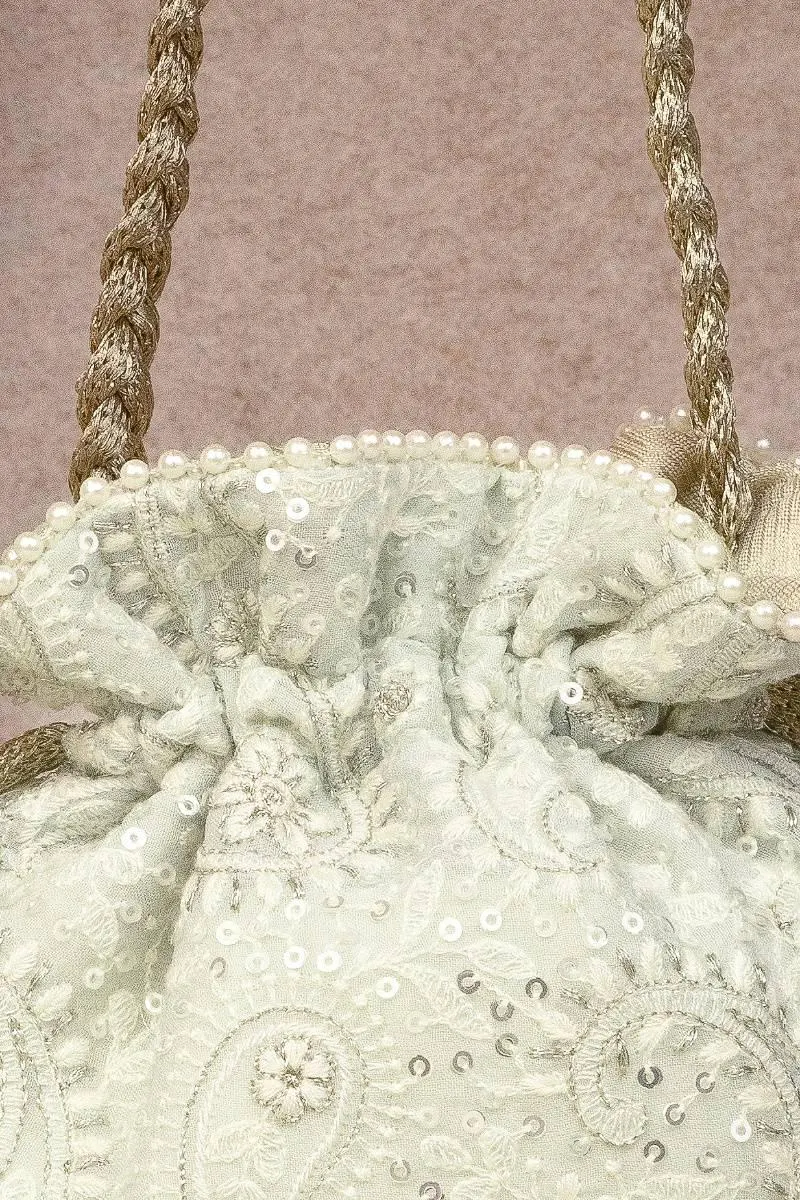 Pearl & Embroidery Details: The pearl trimmings along the edges and the pearl flower clusters at the end of the drawstring are hand-strung and sewn, resulting in a round, lustrous pearl, each meticulously selected. The embroidery utilizes a combination of meticulous machine embroidery and hand-applied patchwork, ensuring the paisley pattern’s smooth curves are flawless even up close, embodying the warmth of handcrafted artistry.