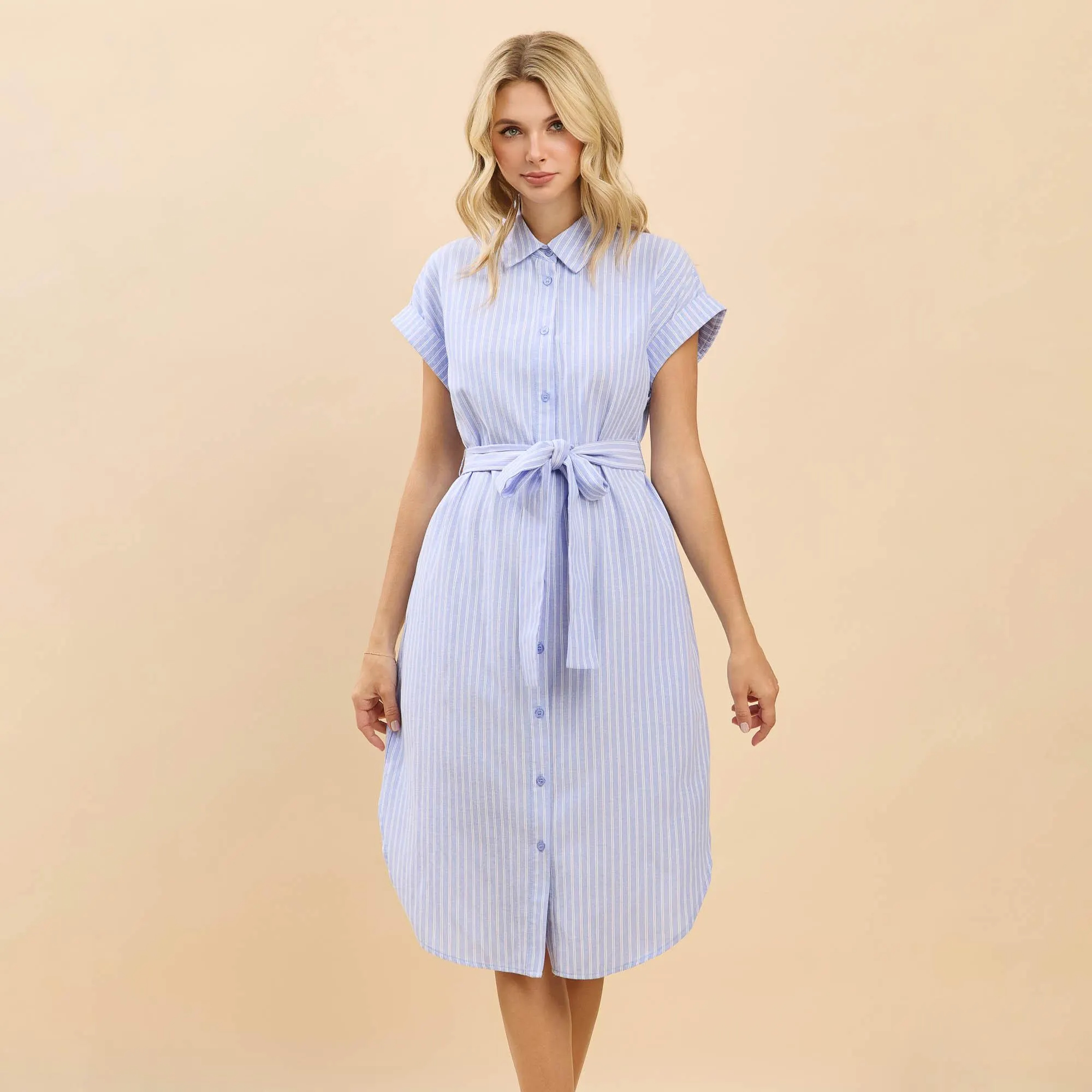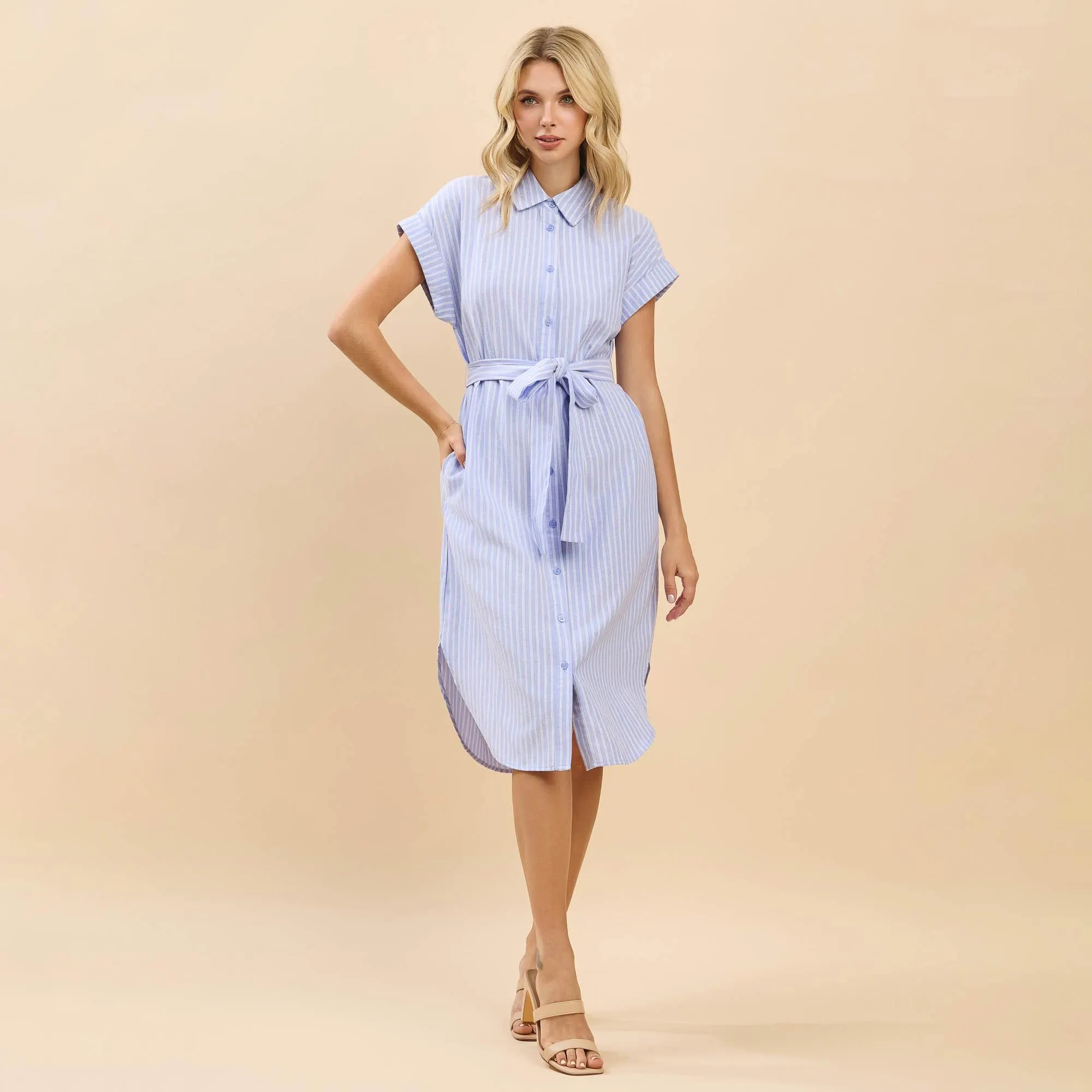Double Side Pockets + Asymmetrical Hem: Practical side pockets add a casual touch, while tucking your pockets adds a casual touch. The asymmetrical hem, shorter in front and longer in the back, elongates your legs while walking, breaking the monotony of a shirt dress and creating a smart and stylish look.