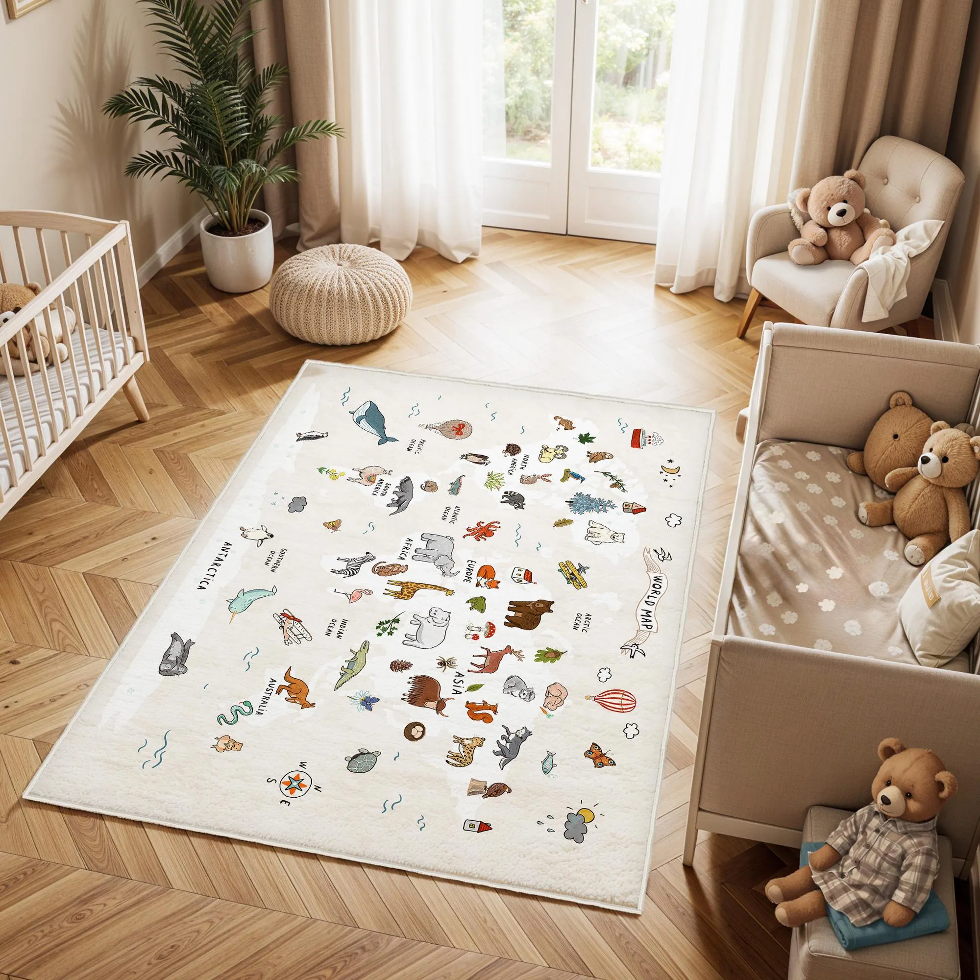 Children’s room learning corner: Placed near the reading or toy area, this rug allows children to engage in a mini-animal geography classroom while playing or reading, allowing them to accumulate knowledge through their daily activities.