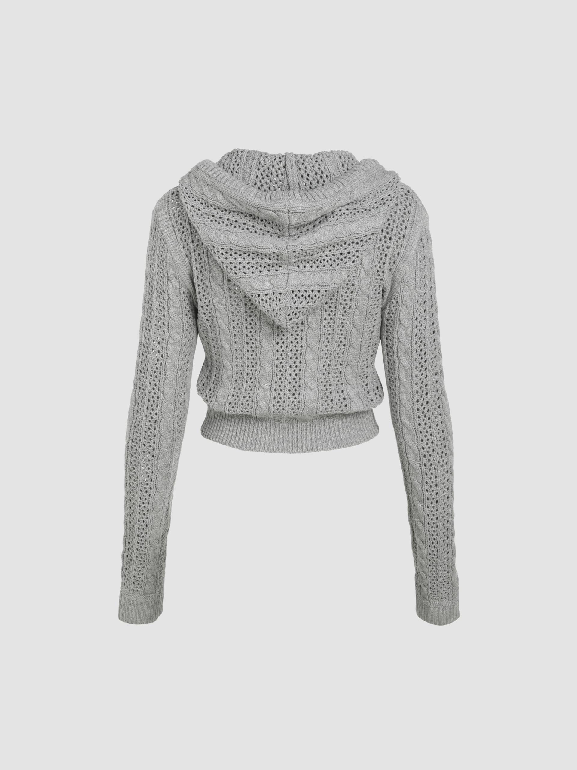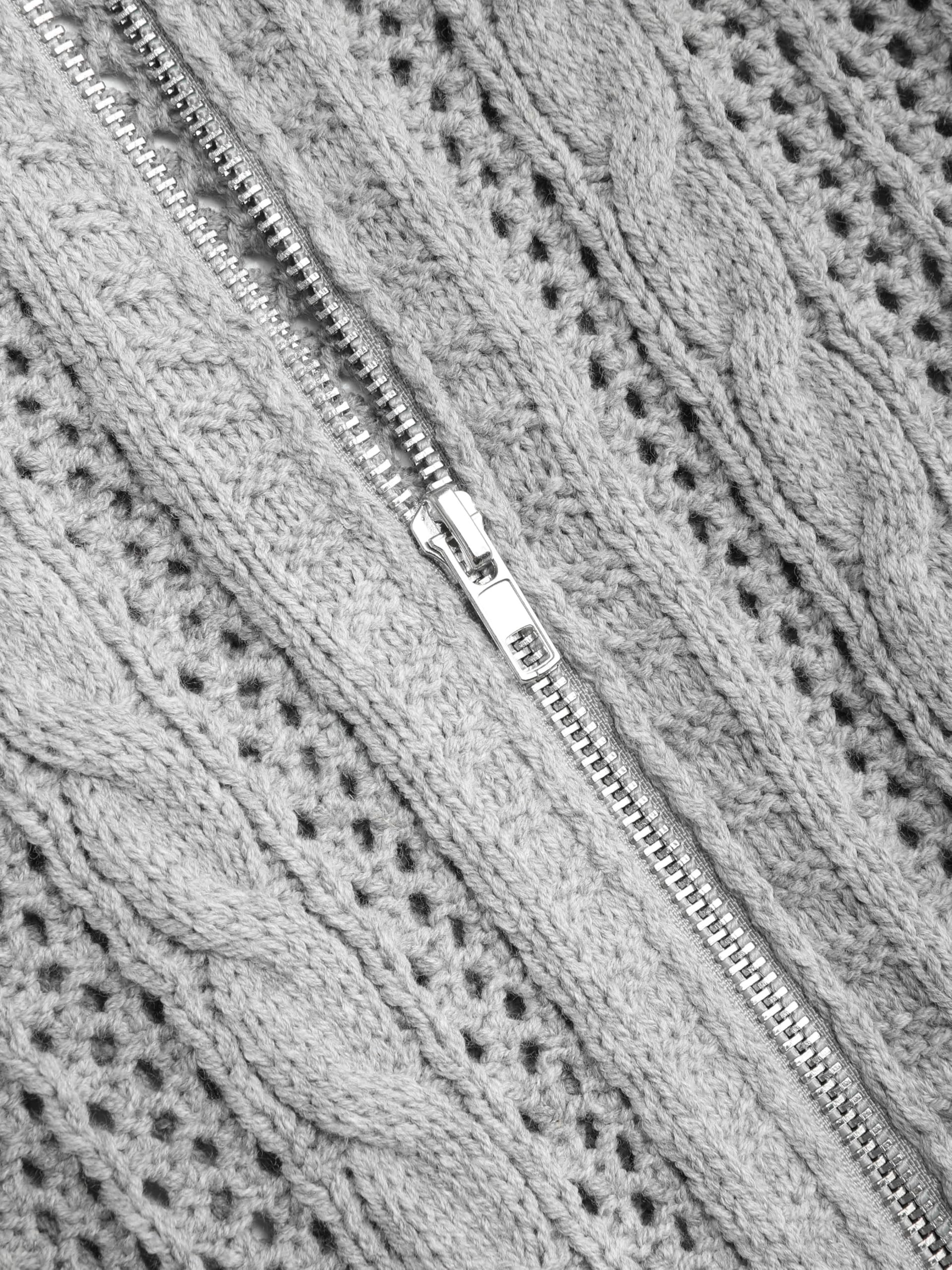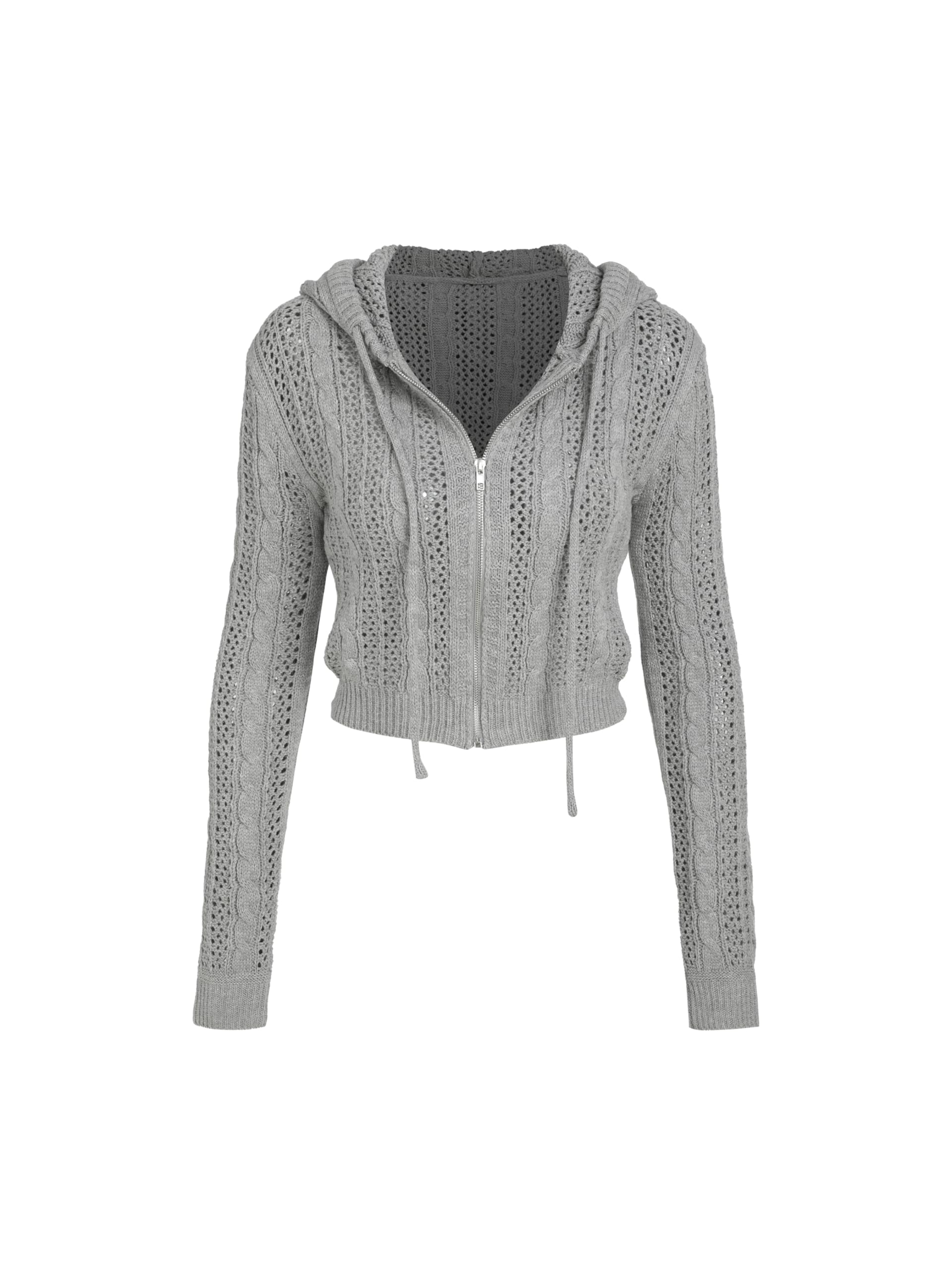 Be the first to review “Gray openwork knit zip-up hoodie”