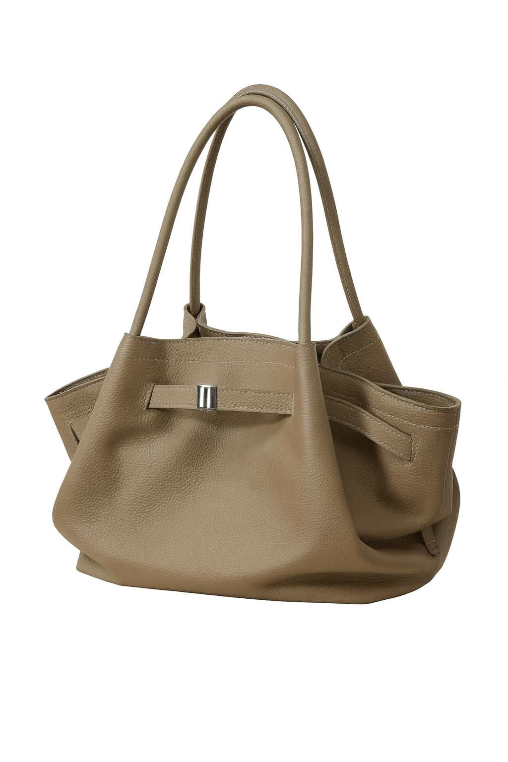 The bag boasts a relaxed, soft silhouette with slightly winged sides, offering ample capacity without sacrificing elegance.